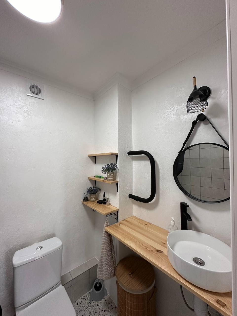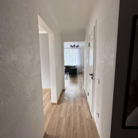 Произведена замена всей сантехники и труб, половых покрытий -замена на ( кварц винил)и полностью замена электрики, на стенах декоративная штукатурка.