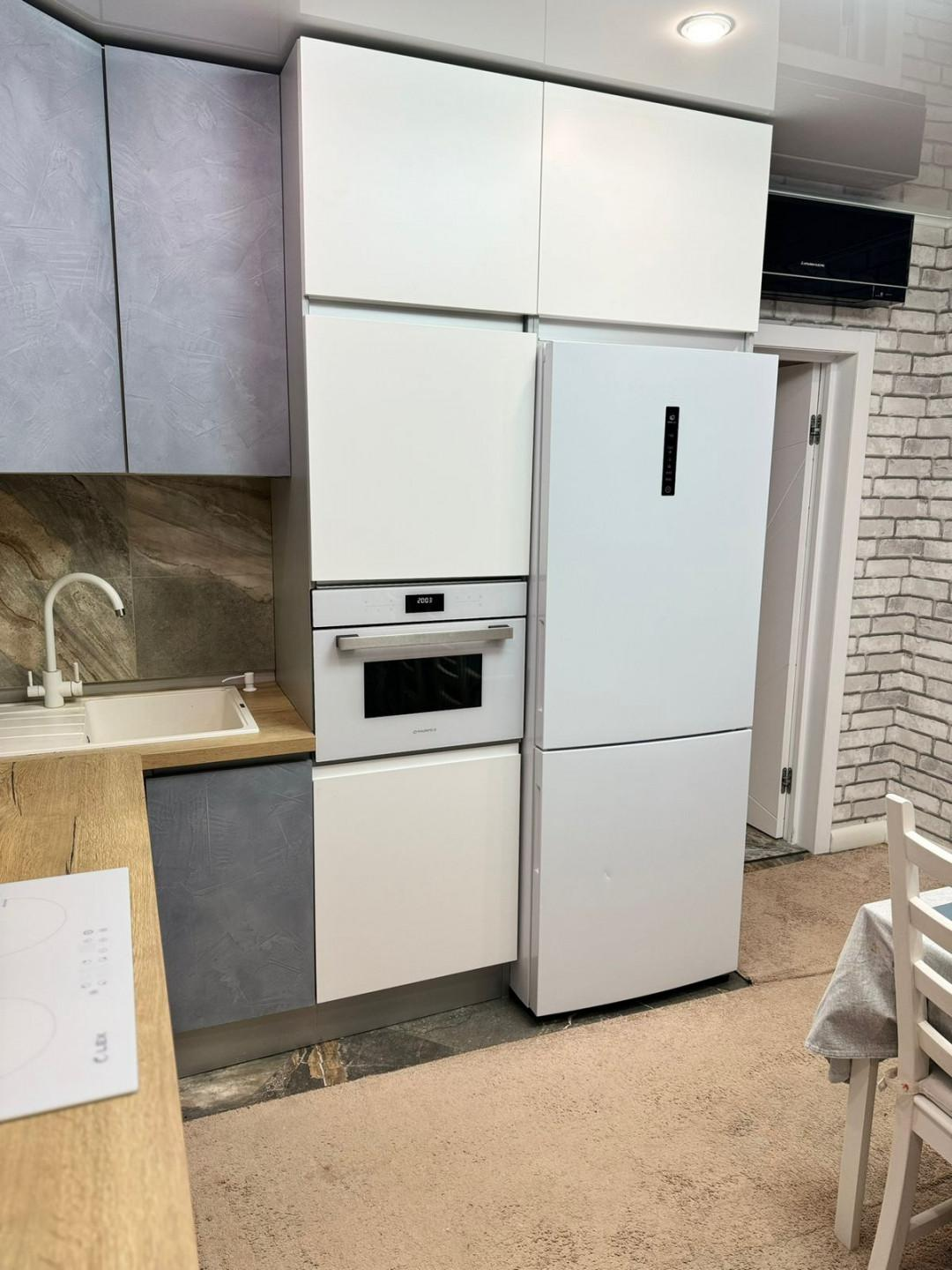 Квартира полностью меблирована и оснащена всей необходимой техникой (посудомоечная машина, 2-х камерный холодильник, духовая печь, керамическая варочная панель, вытяжка, стиральная машина-автомат, телевизор ).