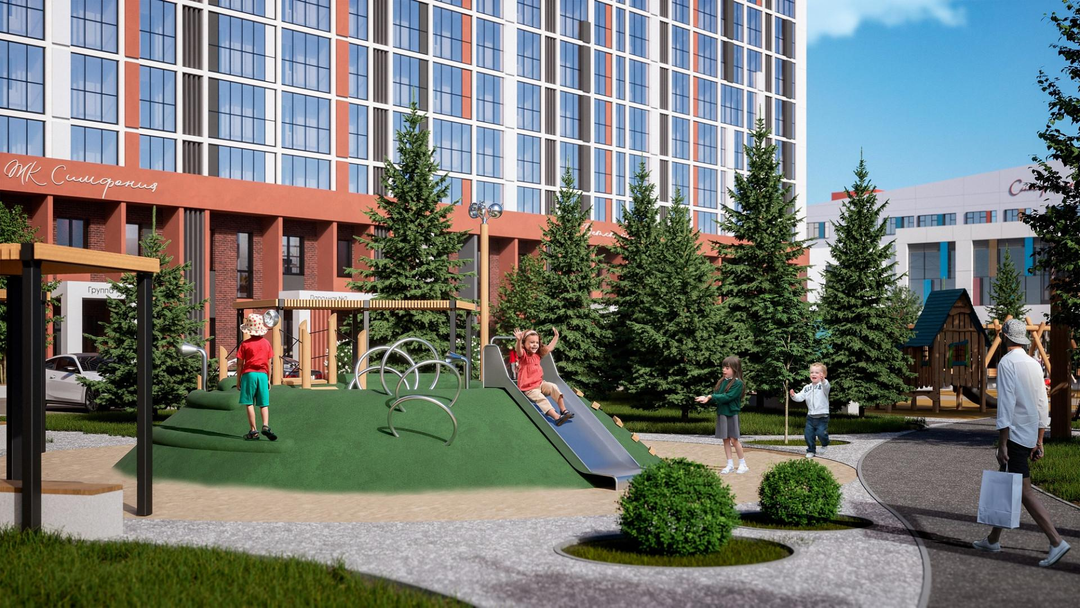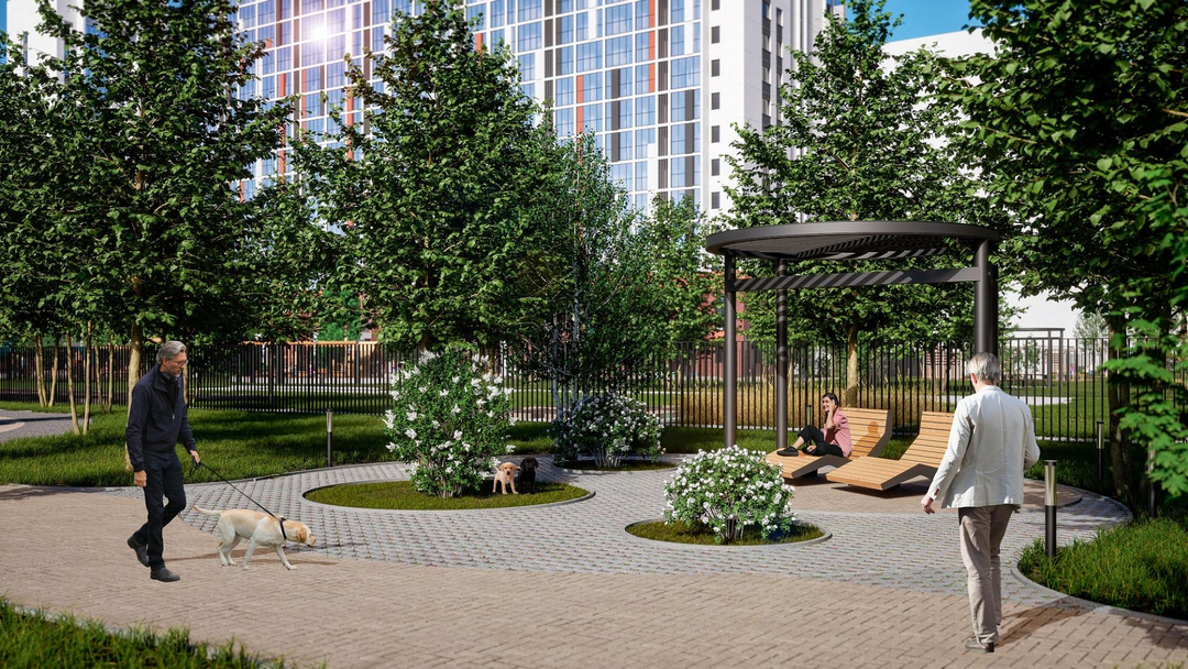 Уютные дворы с ландшафтным дизайном, огороженной территорией и отсутствием автомобилей. Аккуратное озеленение и безбарьерная среда делают дворы по-настоящему комфортными для жизни.