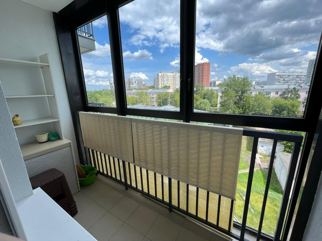 Квартира расположена на 6 этаже 18-этажного дома. Потолки — 2,7 м, окна выходят на тихую улицу.