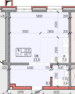 40,7 м²