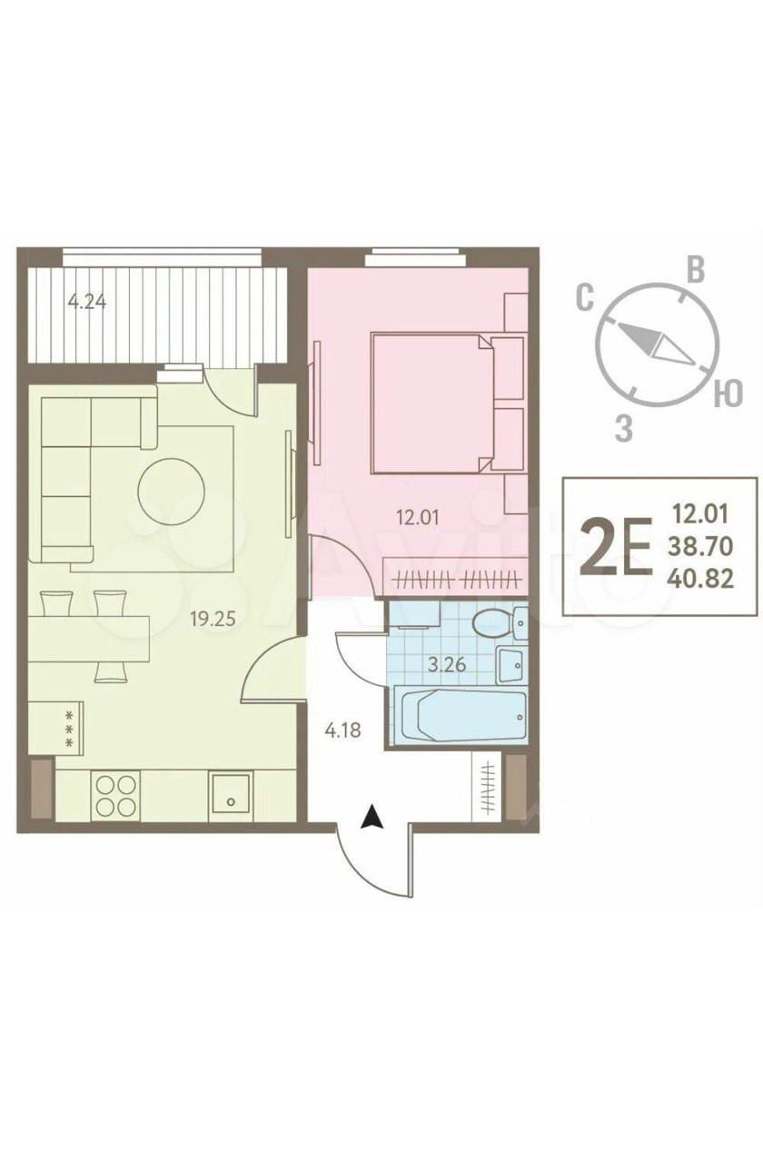 Формат Е2 — удобная и современная планировка (кухня-гостиная + отдельная спальня)