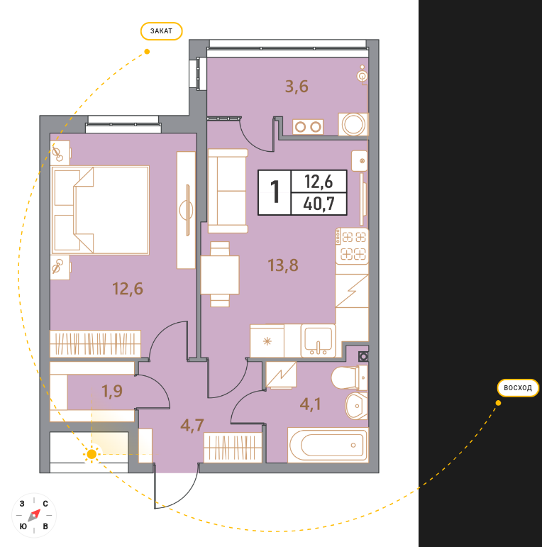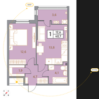 ХарактеристикиЗастройщик: «Магнум»Корпус: 1Этаж: 9 (секция 4)Общая площадь: 40,83 м²