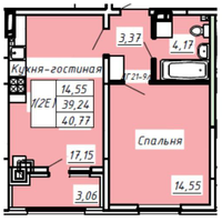 • Общая площадь 40,9 м²