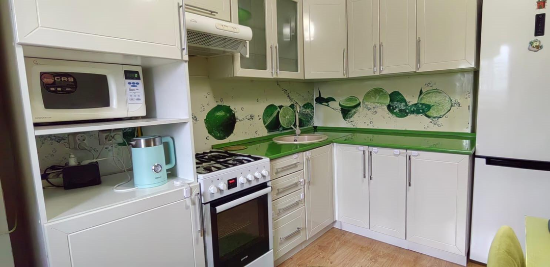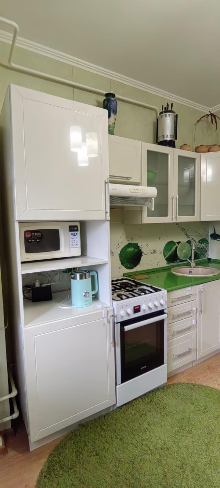 Продается квартира с мебелью и встроенной кухней ( то что видите на фото). Вам в подарок — сухая, чистая кладовка площадью 8 кв.м с полками и глухой дверью.