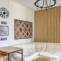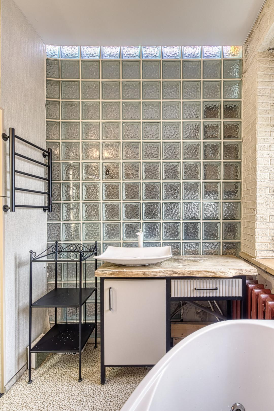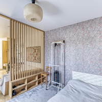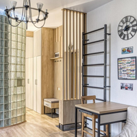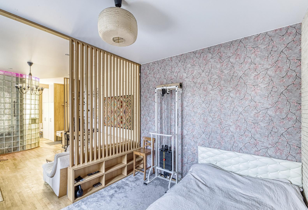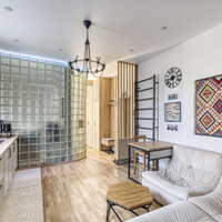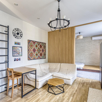 Предлагается к продаже не просто квартира, а готовая к проживанию работа дизайнера. В отделке использованы дерево, камень и другие натуральные материалы. Большая комната грамотно разделена деревянной перегородкой на две функциональные зоны, что создает ощущение просторной студии с приватной спальной территорией.