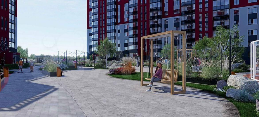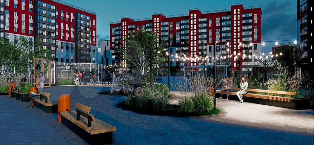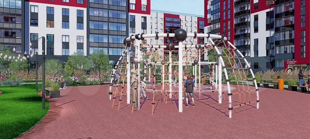Большой современный двор, со множеством различных площадок по соседству, которые постоянно находятся под камерами видеонаблюдения