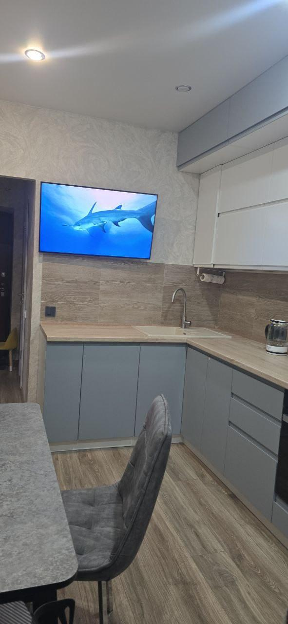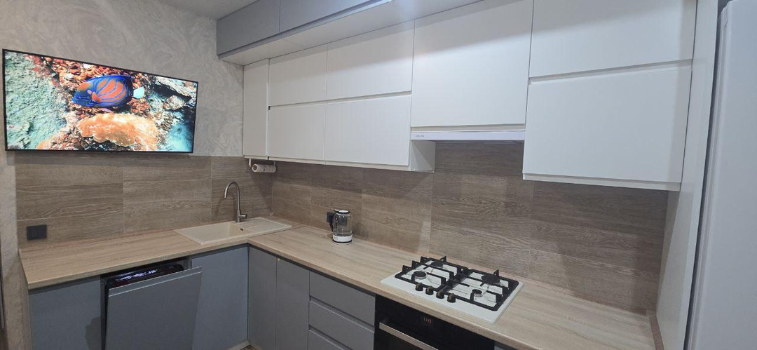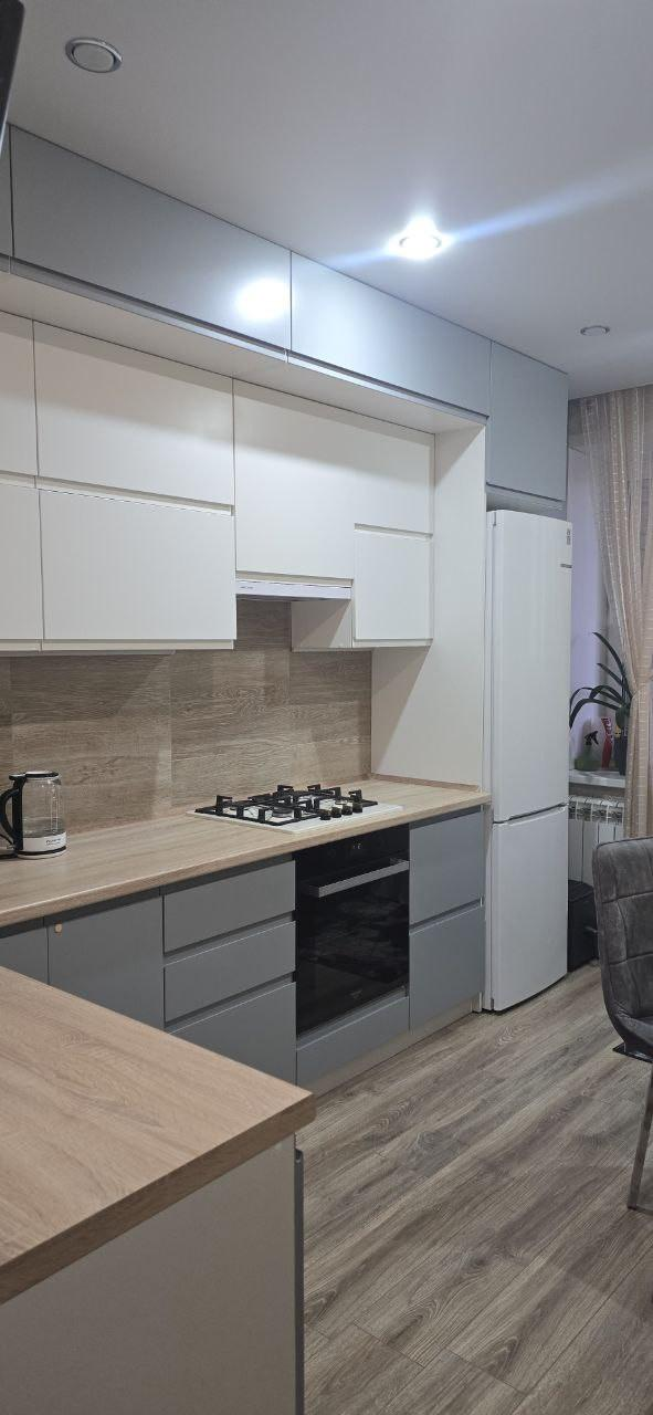 Встроенный кухонный гарнитур из хорошего качества с техникой: варочная панель Bosch,духовой шкаф ,вытяжка ,посудомоечная машина ,что обеспечивает вам идеальные условия для комфортного проживания.