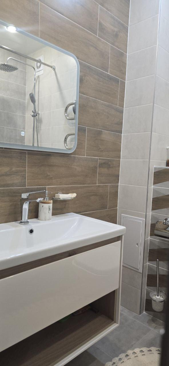 -С/у полностью в современном стиле, для снятия стресса и усталости установлен Тропический душ .