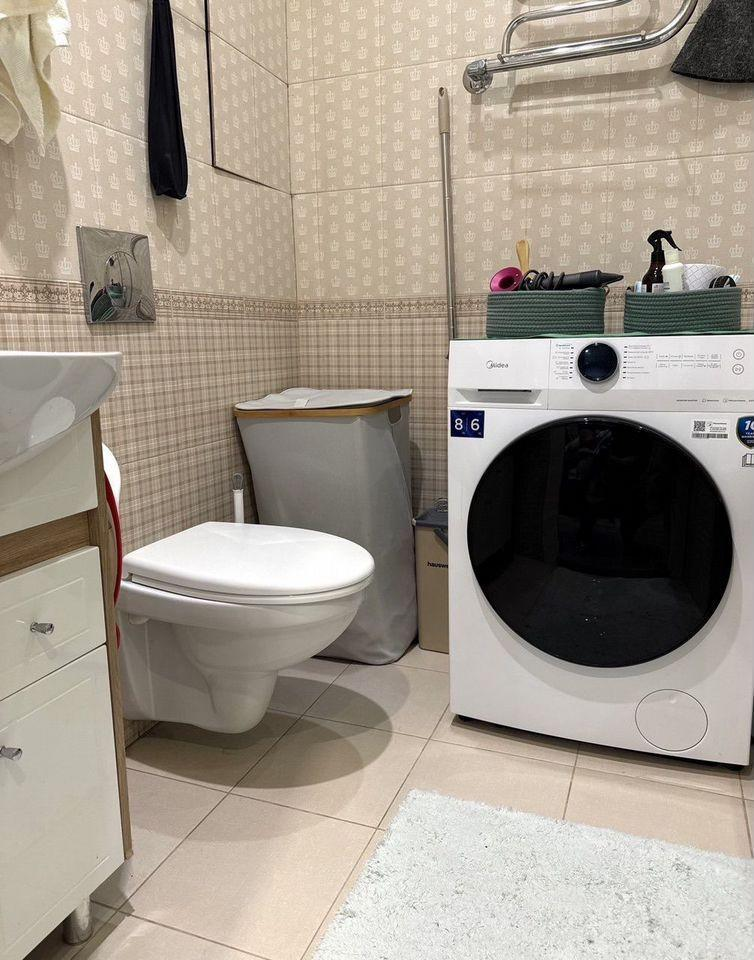 Ключевые преимущества квартиры:Просторная кухня 11 м² с полным набором техники (холодильник, посудомоечная машина).Вид из окон на городскую улицу — много света и ощущение простора.Отдельная гардеробная для удобного хранения вещей.Светлая комната с практичной мебелью (шкафы, диван).Совмещенный санузел с современной сантехникой и стиральной машиной.