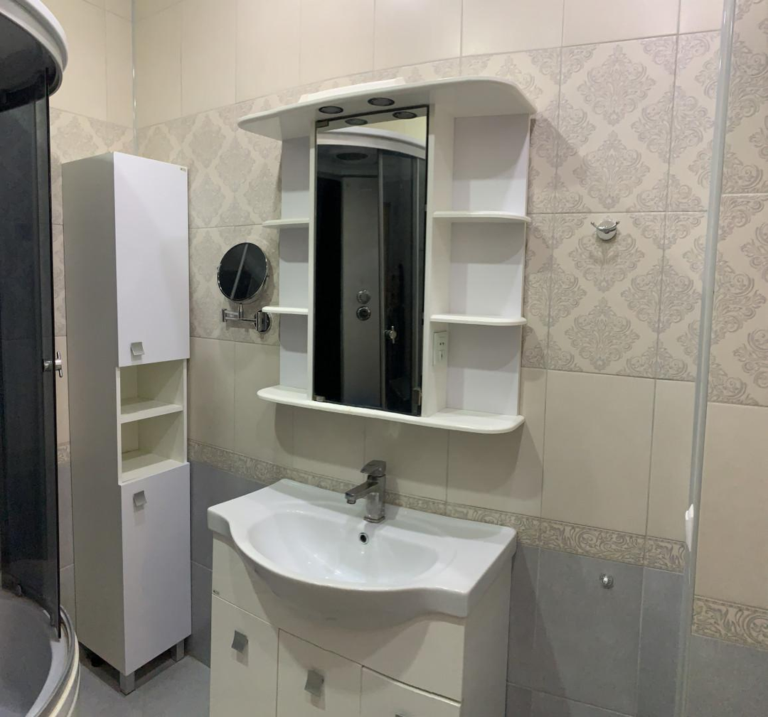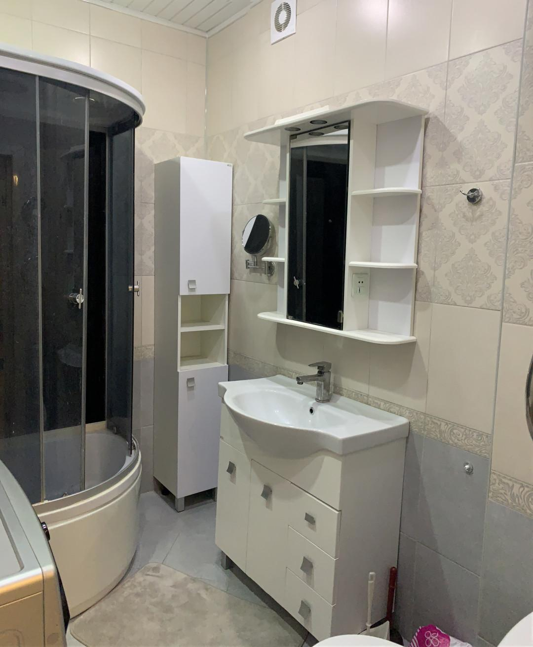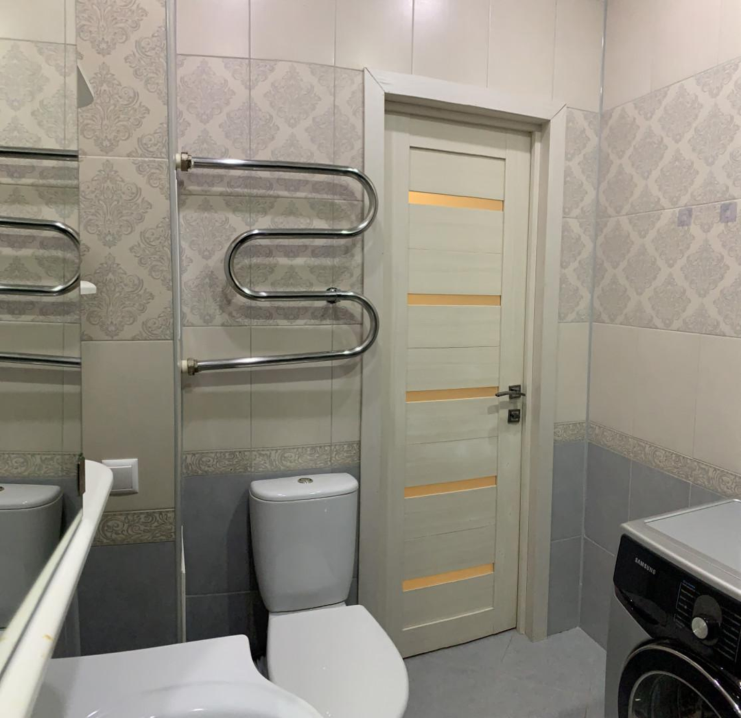 Санузел совмещен отделан современной плиткой. Сантехника в хорошем состоянии.