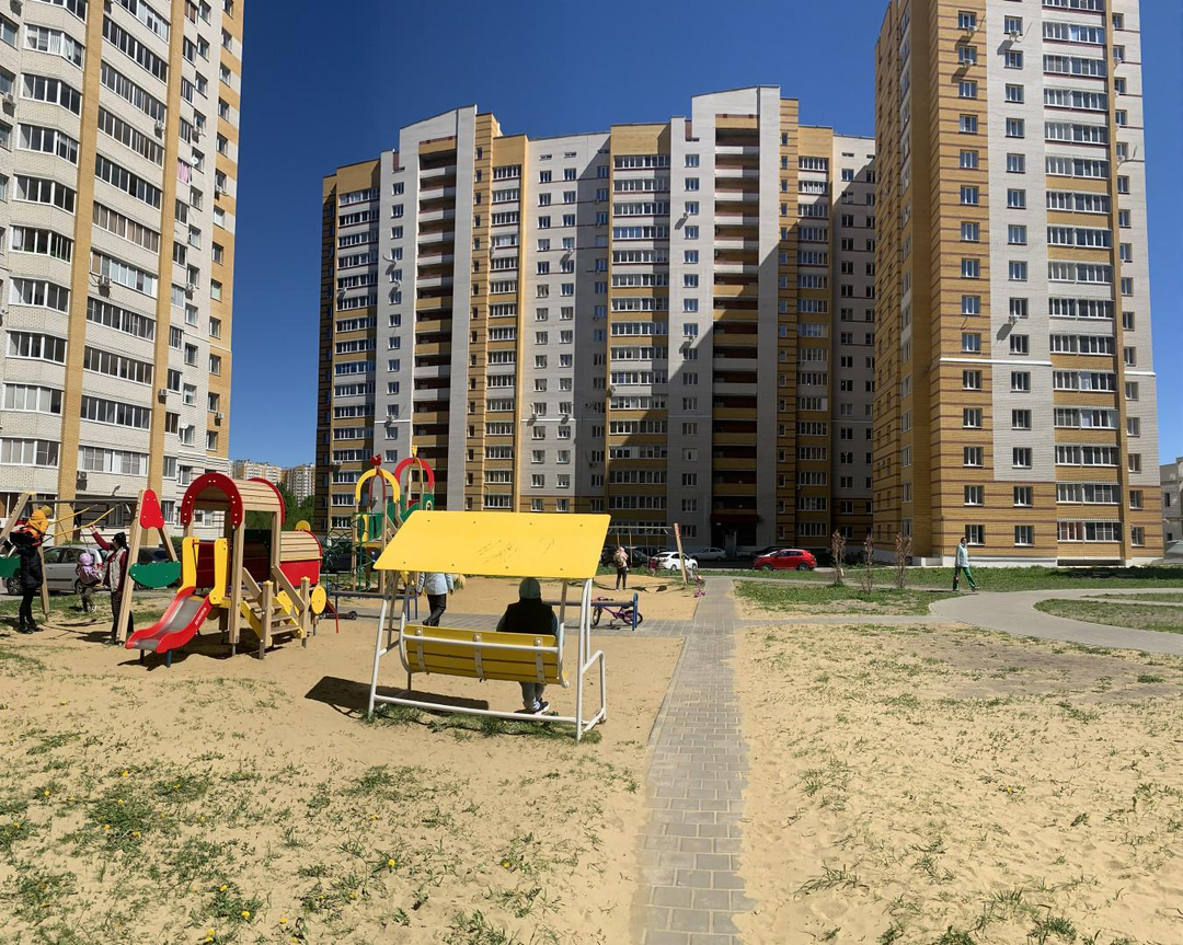 Двор большой, оснащен детской площадкой и местами для отдыха, что идеально подходит для семей с детьми.