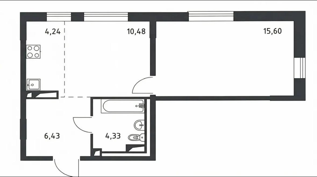 -1-комнатная, планировка - двухкомнатная евро . 41.1 кв.м