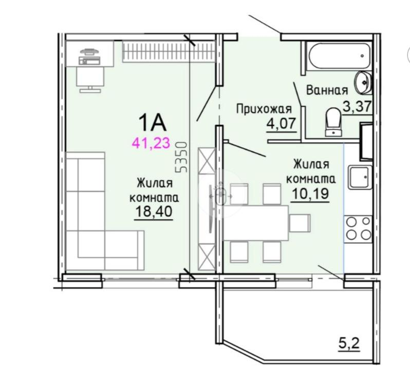 • Жилая площадь 18,4 м²