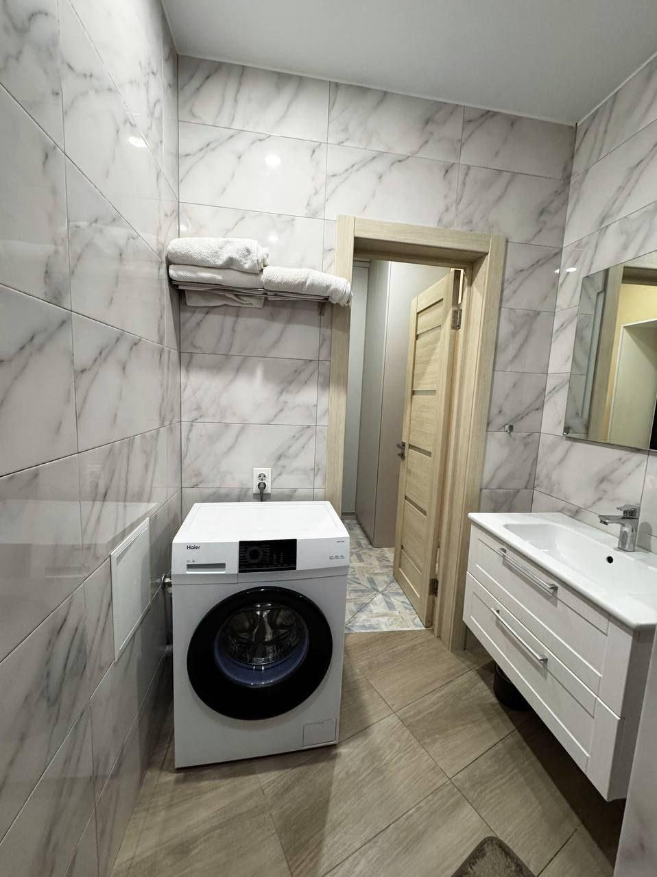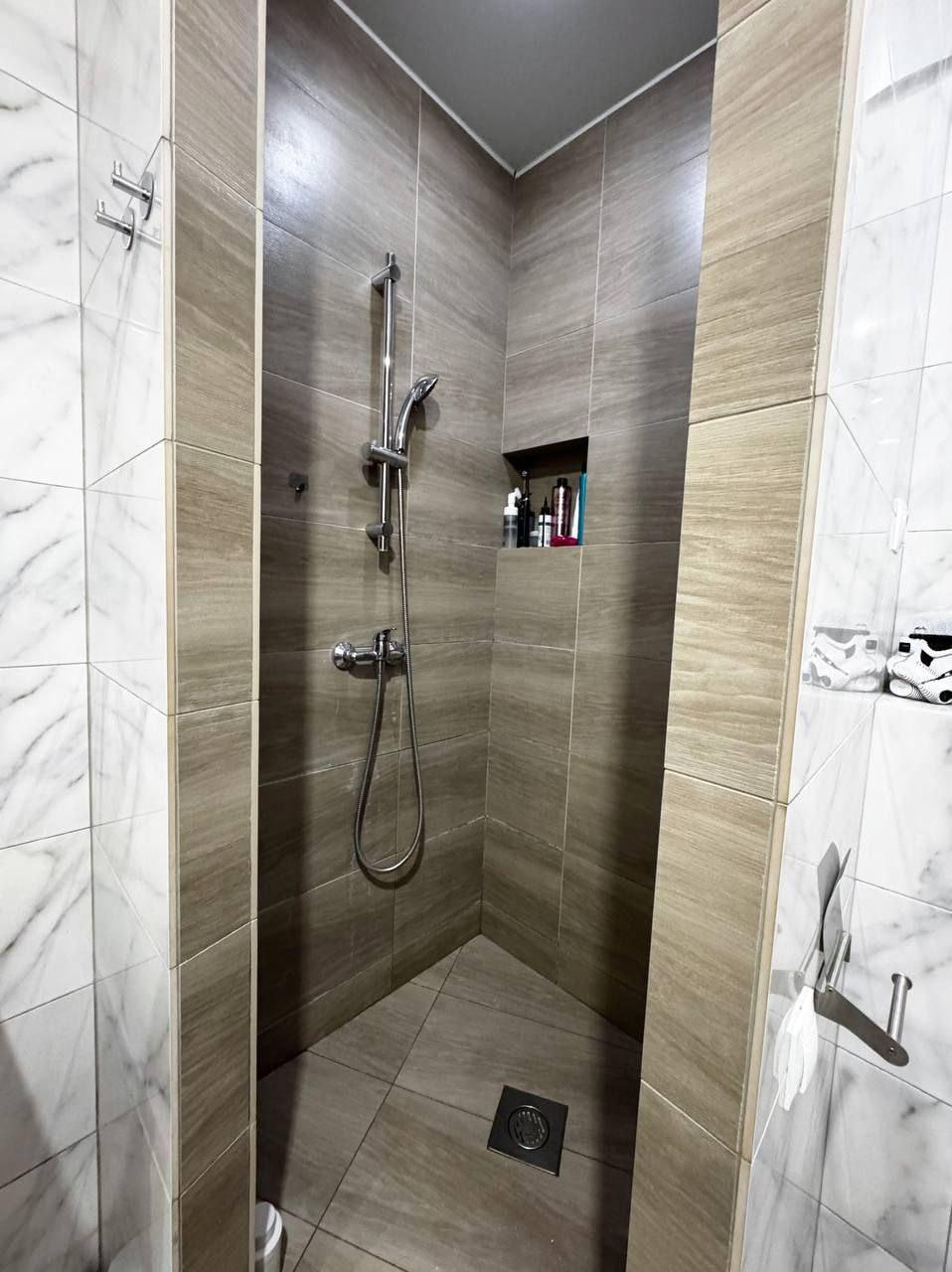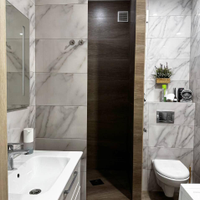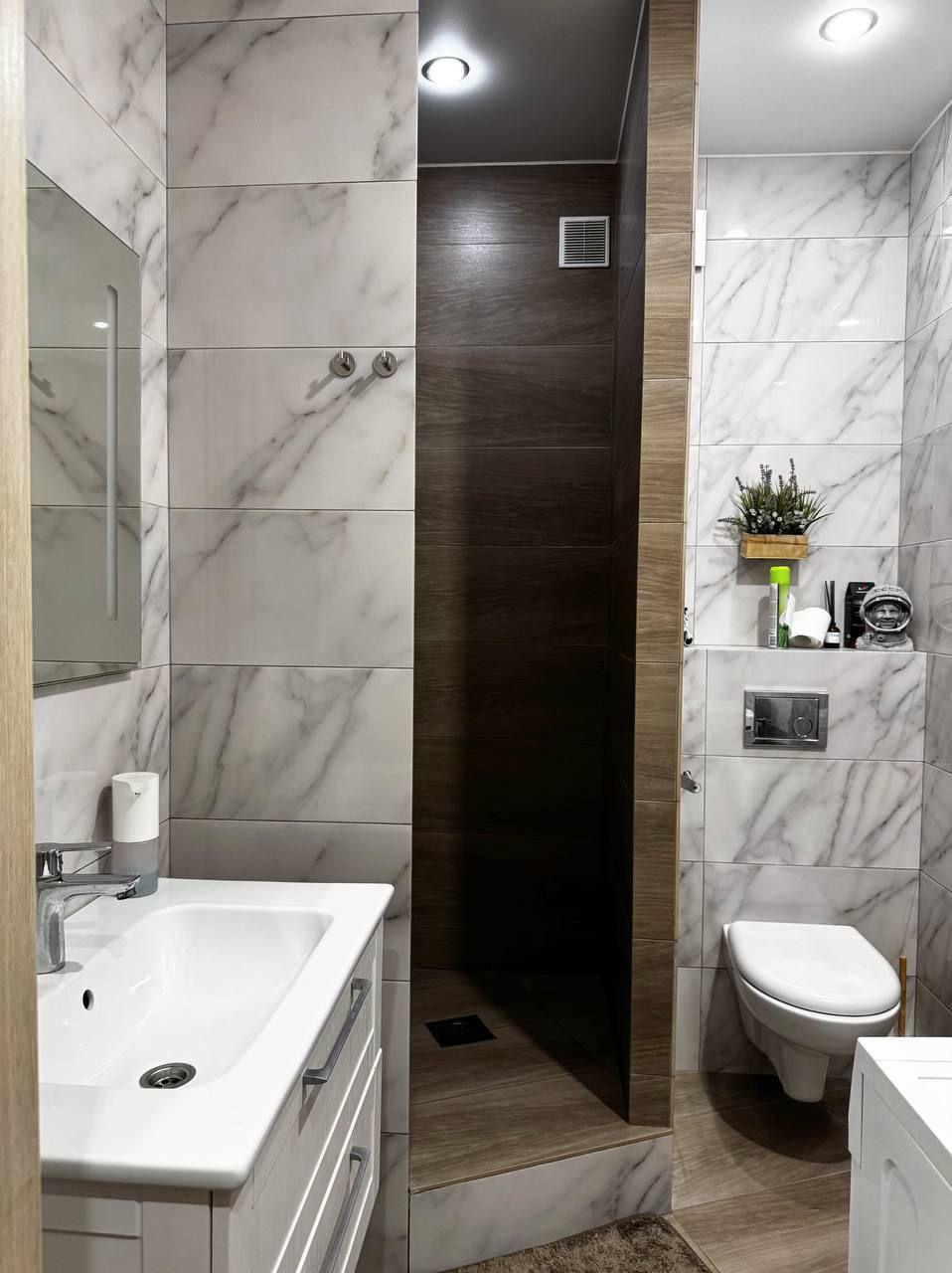 -Санузел полностью в плитке ,современная сантехника