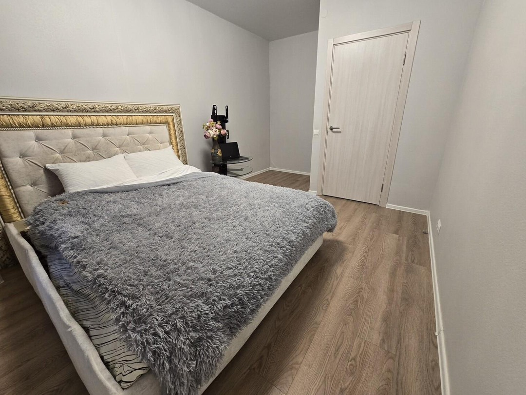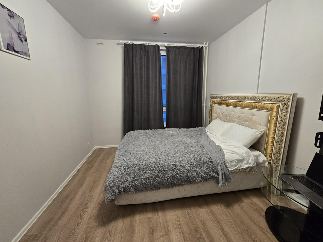В спальне двуспальная кровать 1.60 . Так же спальня оснащена местом под просторную гардеробную. Окна так же во двор,что является преимуществом в этом ЖК. Дорог не слышно.