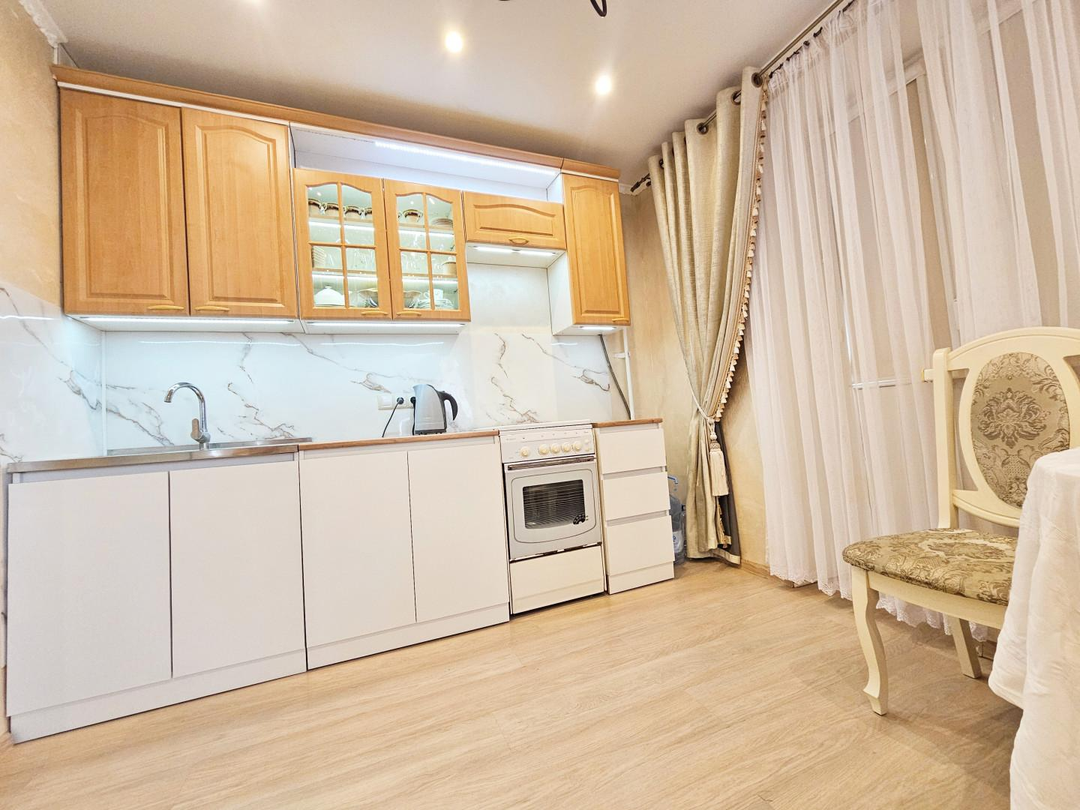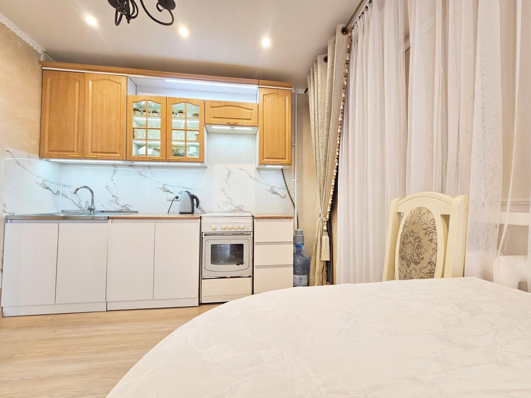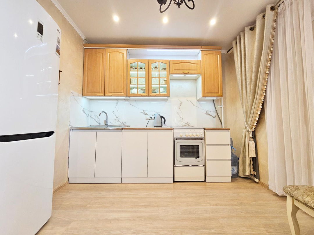 Квартира в прекрасном состоянии, выполнен качественный ремонт с функциональным зонированием комнаты в 21,2 квадрата на два помещения - спальную зону и гостиную. Всё свежее, чистое, аккуратное — хоть сейчас заносите чемоданы и живите. Ничего не нужно переделывать. Остается почти вся мебель (при чем у кухни есть белые верхние еще не установленные шкафы - все оставим) и даже некоторая техника. Все в прекрасном состоянии, вам не понадобится ничего обновлять!