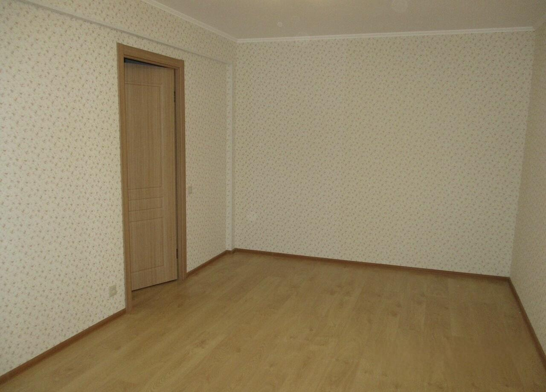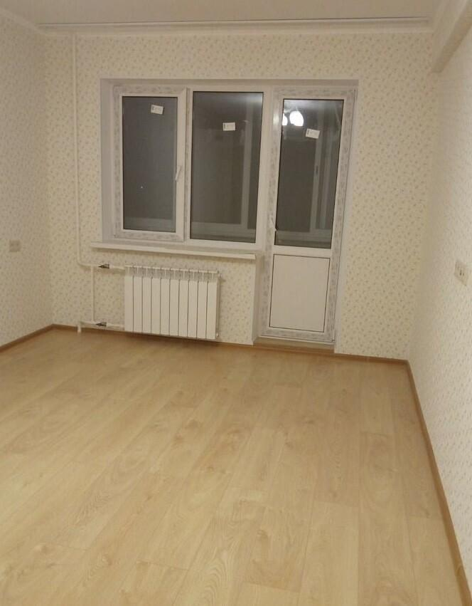 В квартире выполнен ремонт под ключ: уложен ламинат, поклеены обои, установлены межкомнатные двери, кухонный гарнитур, в санузле плитка с сантехникой, застеклённый балкон с отделкой. В комнатах карнизы для штор, шкаф в прихожей.