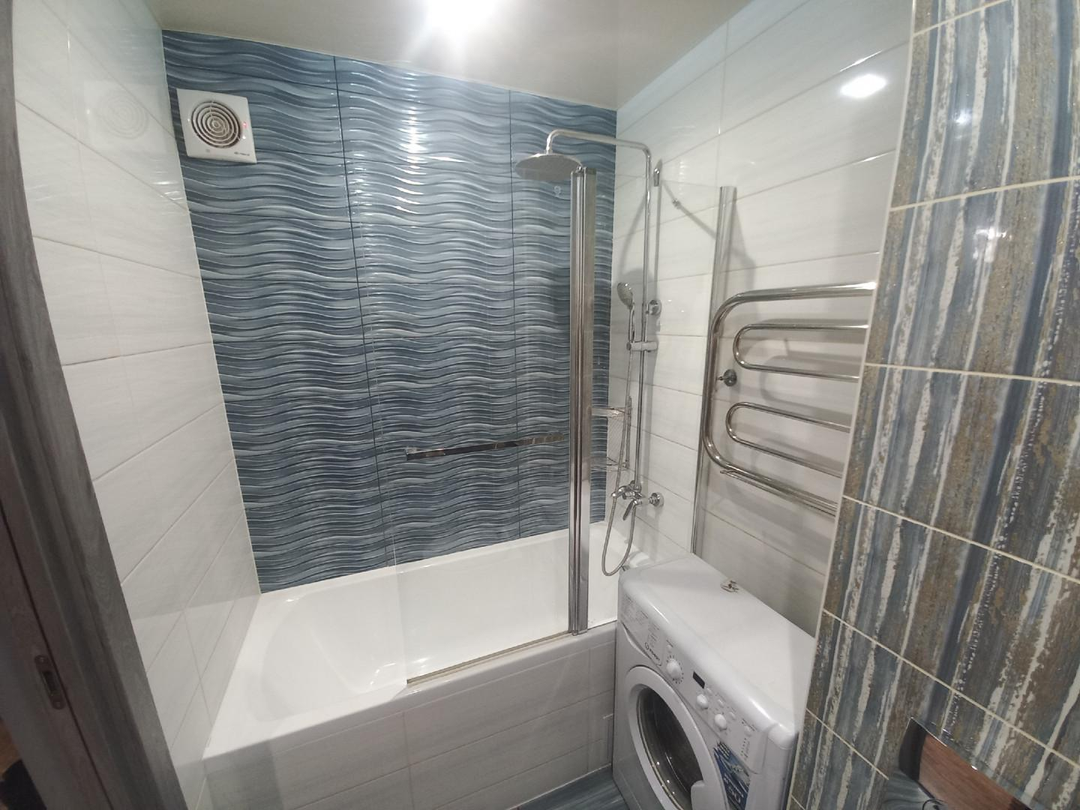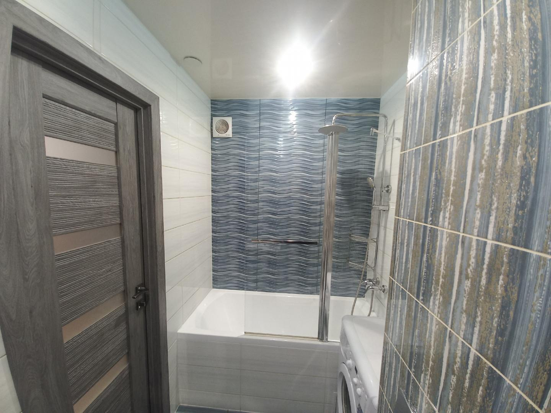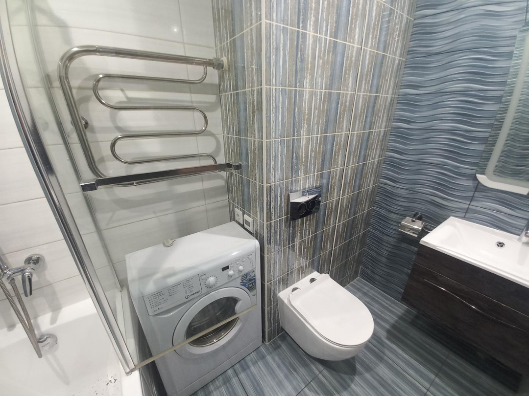 Санузел в кафеле, а также установлен водонагреватель.
