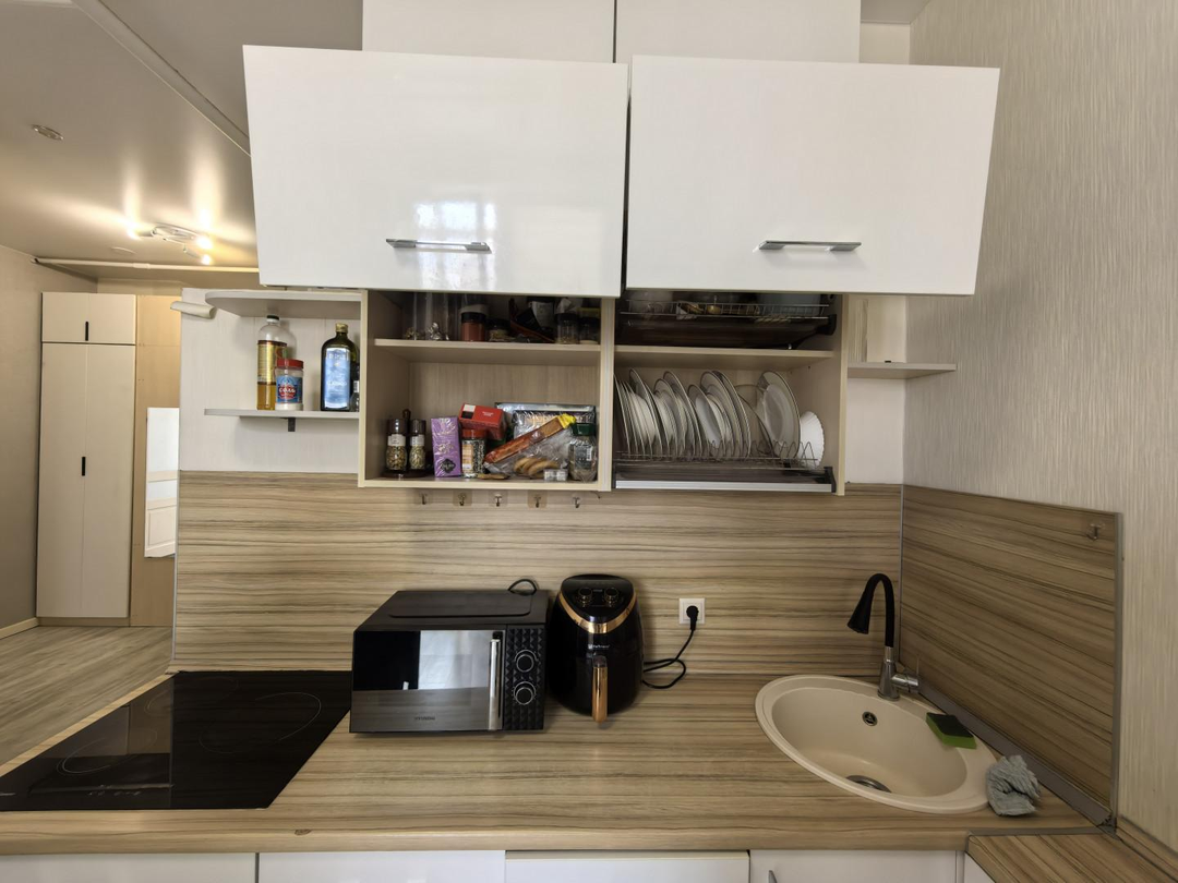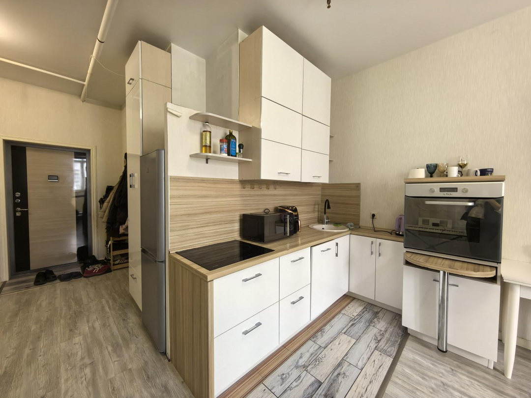 Продуманная организация пространства: функциональная планировка;большая прихожая с местами для хранения площадь 5,45 кв.м.;светлая и просторная спальня, установлен кондиционер, площадь 18 кв.м ;кухня оснащена техникой: