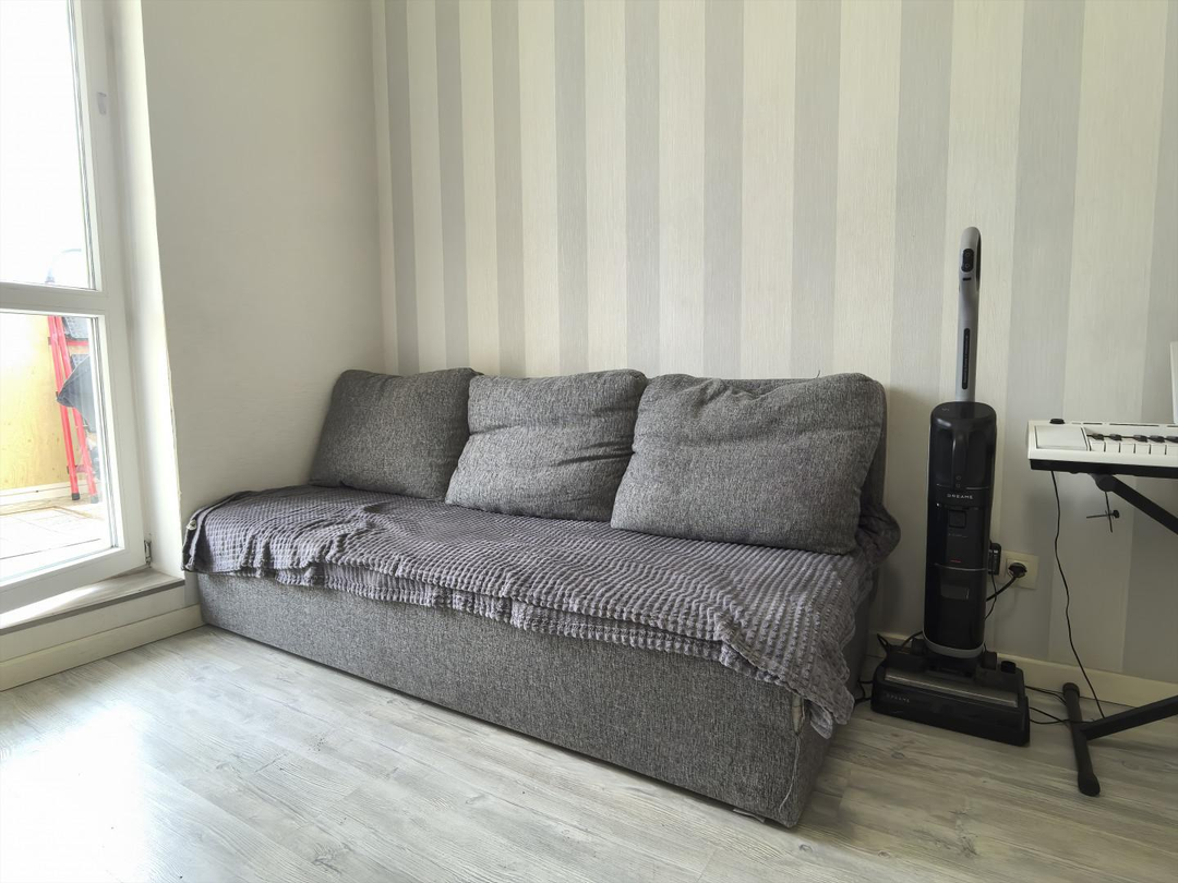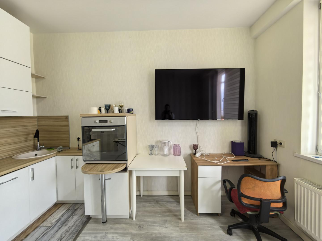 Апартаменты полностью готовы к проживанию- мебелированная и укомплектована всей необходимой техникой. Вид из окна на внутренний двор.