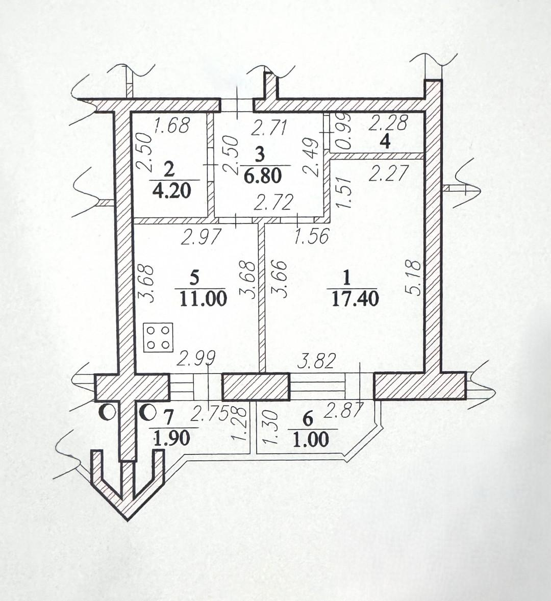 Жилая площадь: 17,4 м²