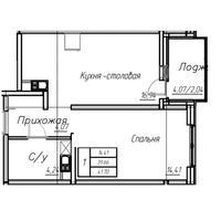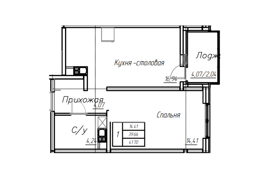 Главное достоинство планировки — большая кухня площадью 16,91 кв. м, идеально подходящая для совместных обедов и приёма гостей. Комната в 14,4 кв. м позволяет удобно организовать зону сна и отдыха. Лоджия открывает возможность любоваться городскими пейзажами и проводить время на свежем воздухе.
