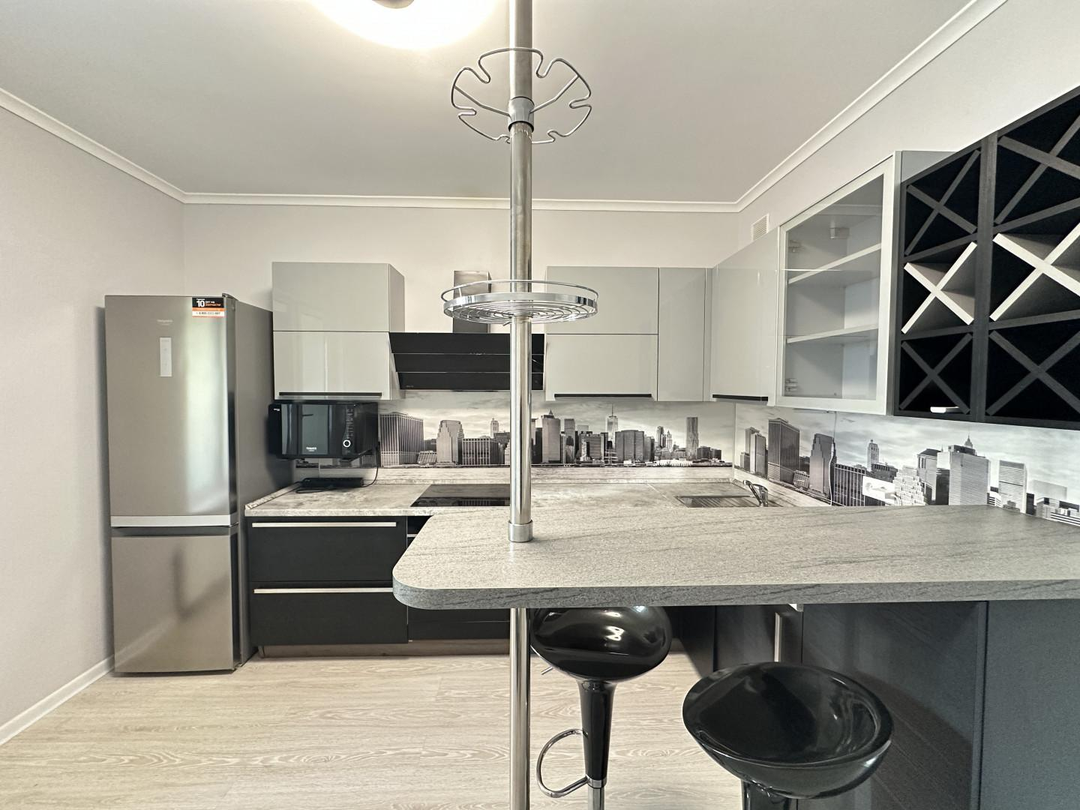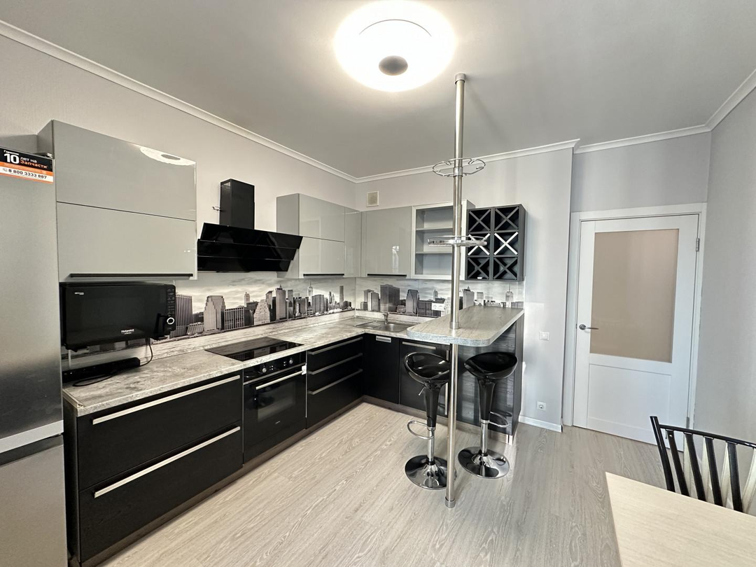 Остается кухонный гарнитур с качественной встроенной техникой : холодильник, посудомоечная машина, варочная индукционная панель, вытяжка, духовой шкаф , кондиционер