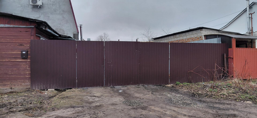 Территория закрыта: Забор из профнастила по периметру дома.