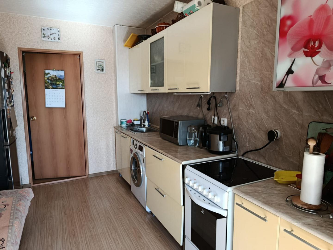 Окна ПВХ, ремонт косметический. Из мебели остается: на кухне -кухонный гарнитур, в прихожей шкаф-купе, шкаф для обуви.