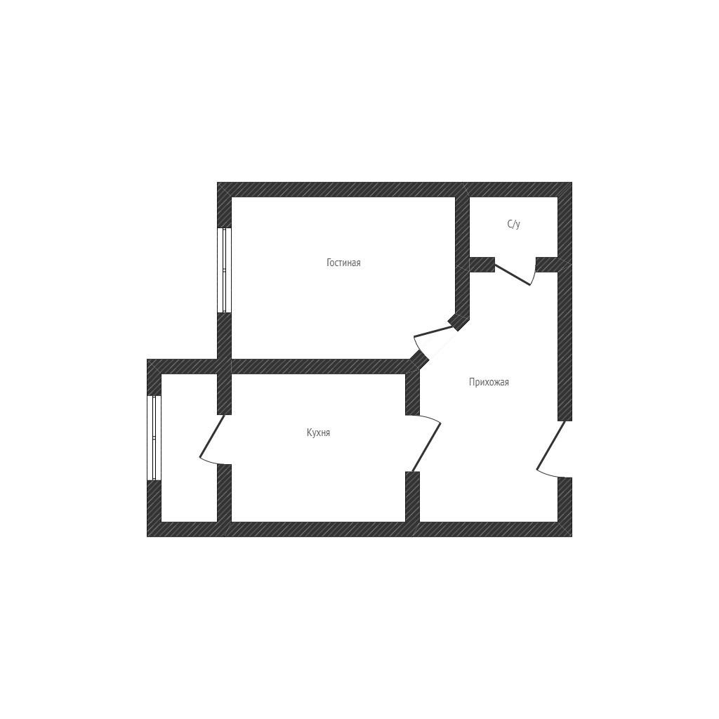 Квартира площадью 40,9 м², изолированные комнаты, кухня 10 м² с выходом на лоджию (остеклена)