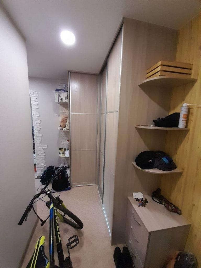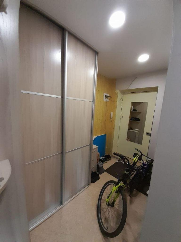Санузел совмещен, большая кухня остаётся кухонный гарнитур и встроенный шкаф в прихожей