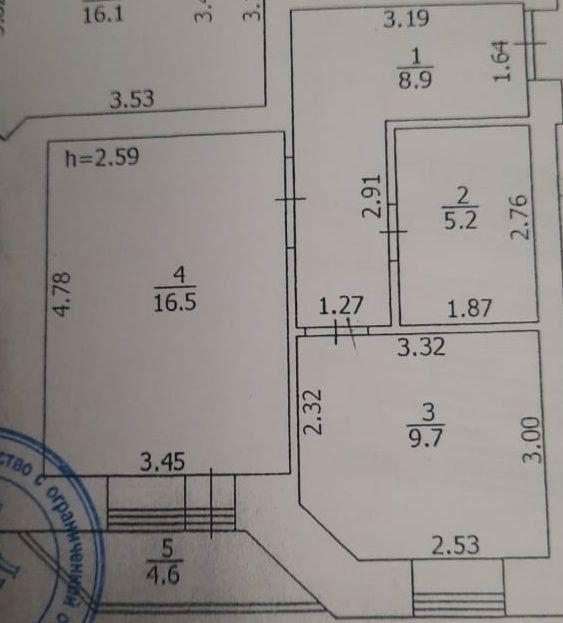 Общая площадь квартиры - 41 кв.м., Кухня 9.7 м