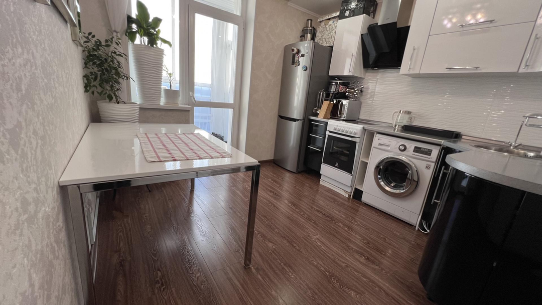 Евроремонт — стильная отделка, качественные материалы, квартира готова для проживания.