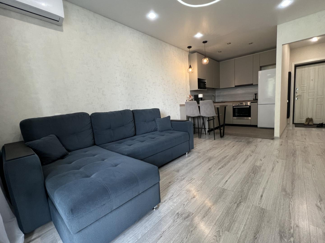 Что внутри:качественный ремонт;чистая и уютная квартир;тёплый пол в коридоре;надёжный ламинат;новая кухня хорошего качества;вся встроенная мебель и техника остаются — можно сразу заселяться;просторная лоджия, оборудованная как зона отдыха;солнечная сторона;окна выходят во двор.