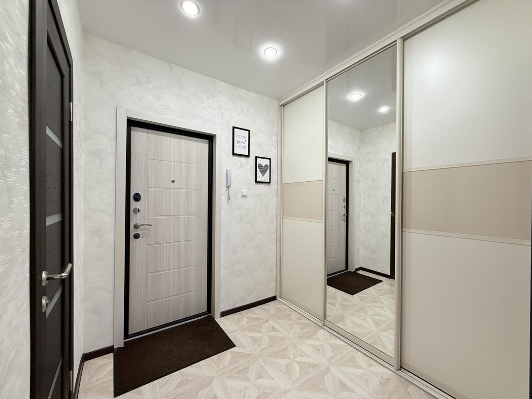 Планировка, которую любят северодвинцы: большая комната 24,5 м², удобно зонировать под спальню, кабинет и зону отдыха.Просторная кухня 8 м² — достаточно места для семейных ужинов и посиделок с друзьями.Удобный широкий коридор со встроенным большим шкафом‑купе экономит пространство и решает вопрос хранения.Раздельный санузел — редкость и большой плюс для комфортной жизни.Застекленный балкон, окна на солнечную сторону — много света и уют в течение всего дня.