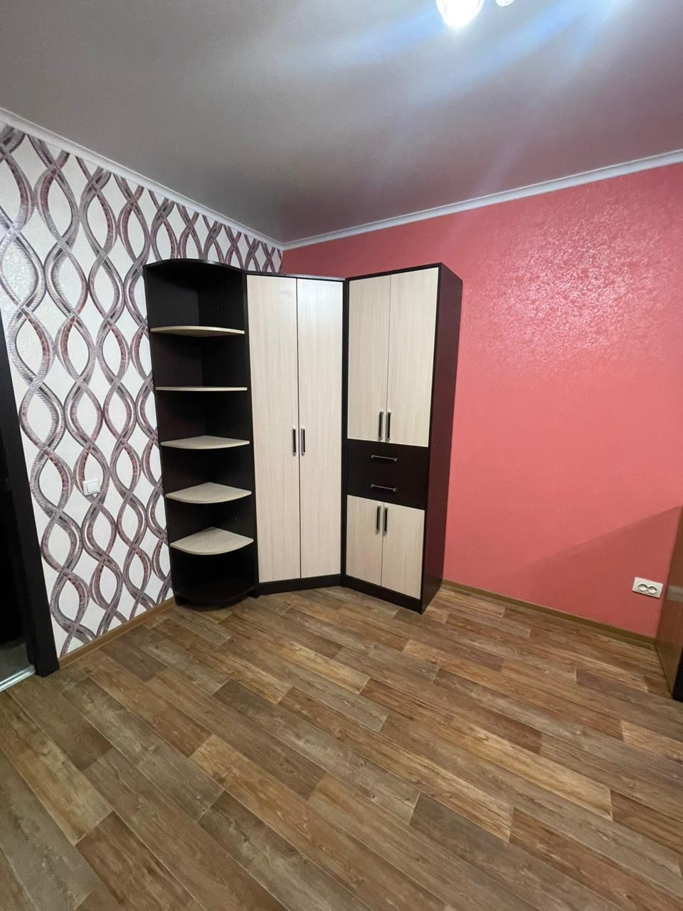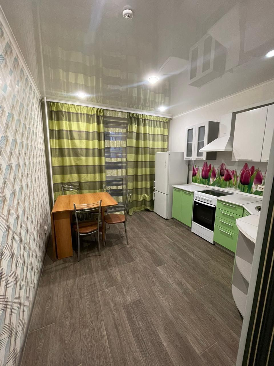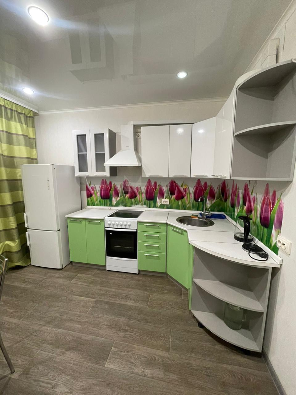 - Остается: кухонный гарнитур, вытяжка, холодильник, плита