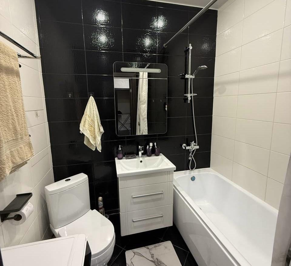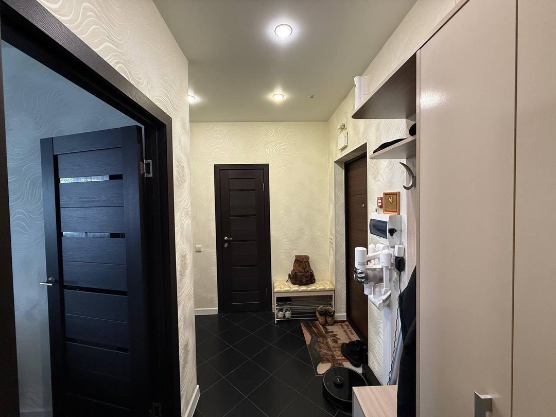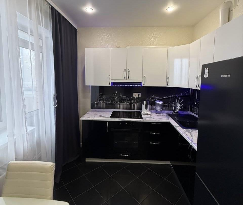 Квартира светлая и уютная, сделан современный евроремонт в темно-белом стиле. Планировка удобная, пространство используется комфортно. Санузел совмещенный. Окна выходят во двор, поэтому со стороны Ленинградского шоссе не слышно проезжающих машин.