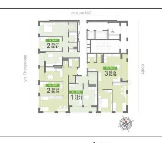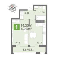 - Общая площадь: 42.49 кв.м