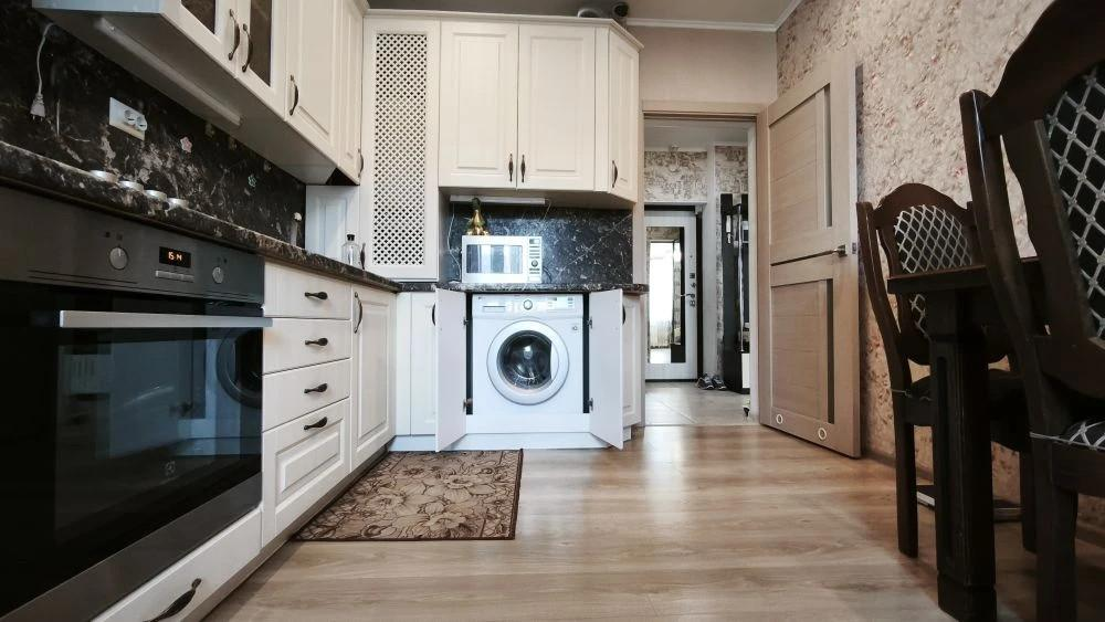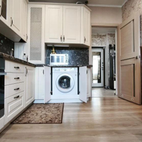 Остаётся всё: пылесос, вся бытовая техника (холодильник LG с управлением через Wi-Fi, стиральная машина LG, микроволновая печь LG, духовой шкаф Еlectrolux), даже гладильная доска с утюгом.