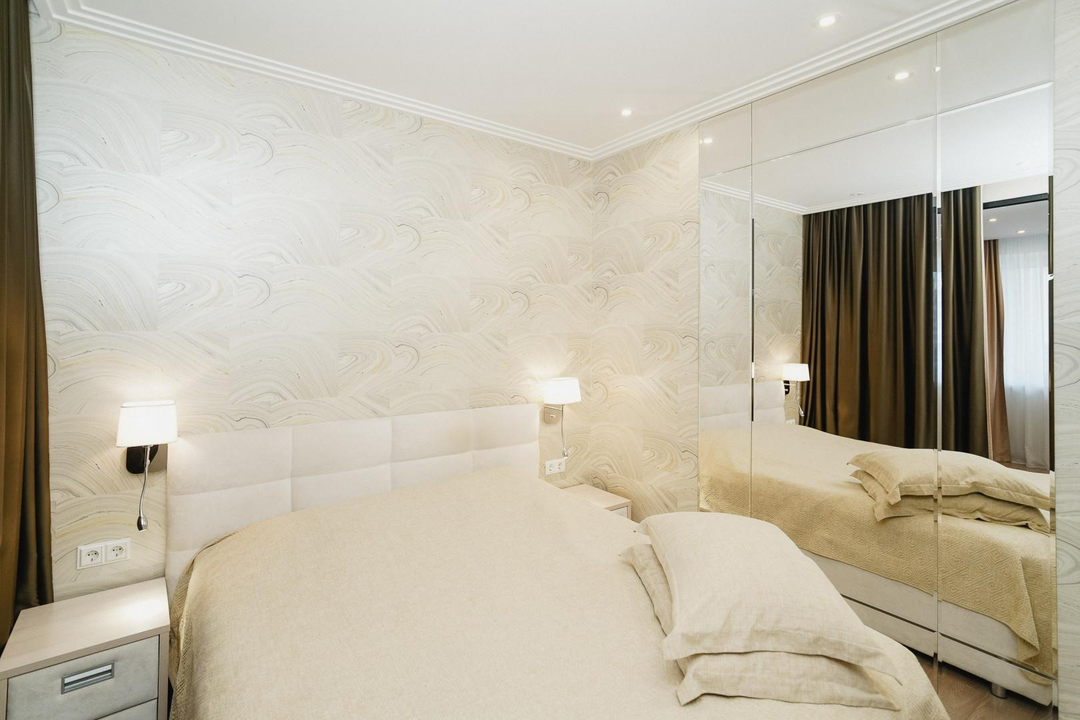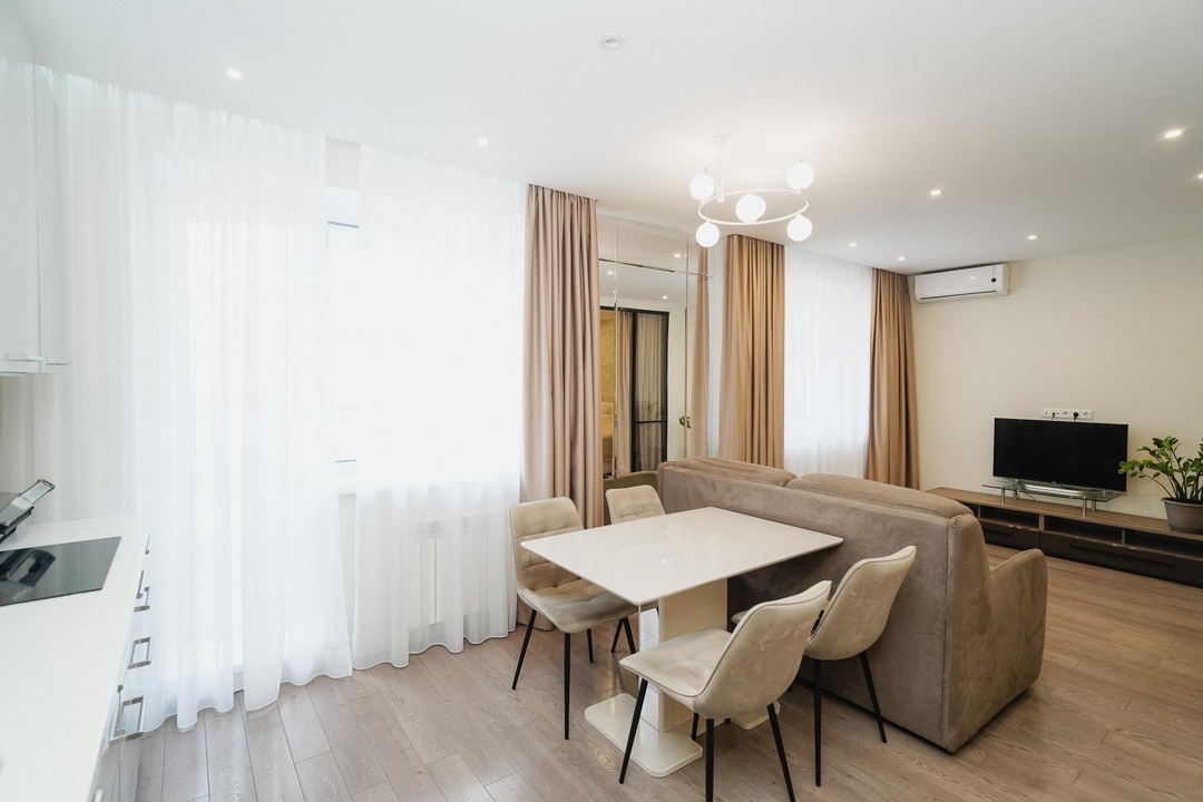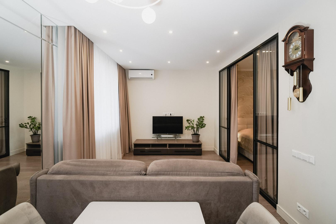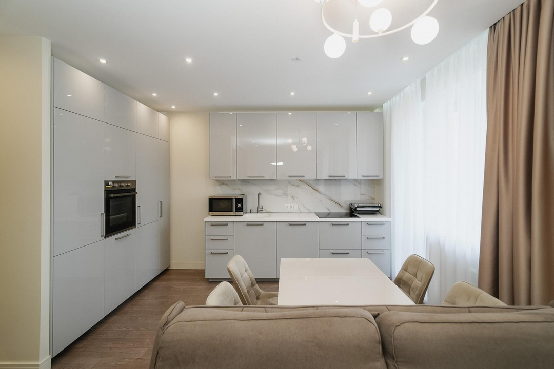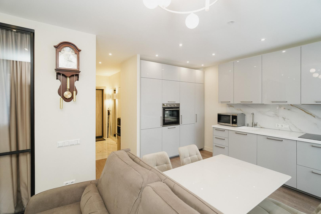 При продаже в квартире остается следующая мебель и бытовая техника: шкаф-купе, кондиционер, диван, тумба под телевизор, кухонный гарнитур, духовой шкаф, варочная панель, посудомоечная машина, кухонный стол, стулья, двуспальная кровать, прикроватные тумбы..
