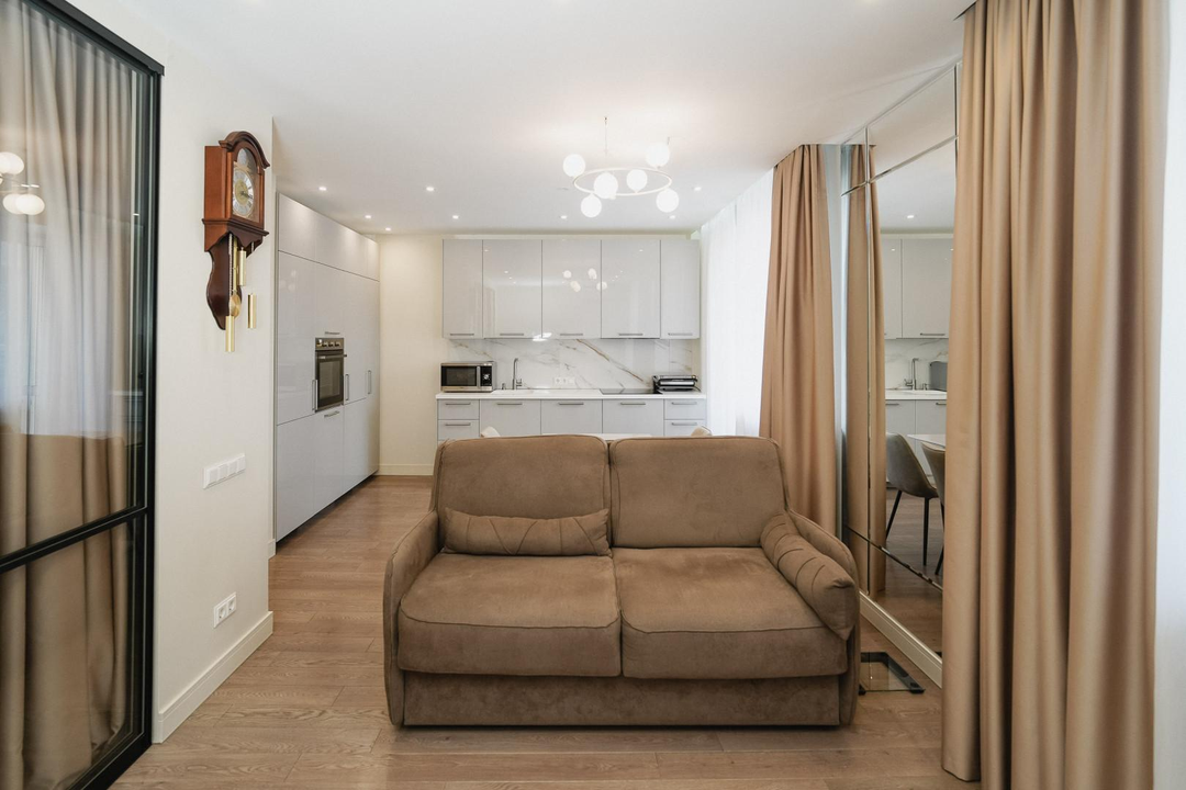 Отличная планировка, которая включает в себя кухню-гостиную, отдельную спальную комнату с вместительным шкафом- купе.