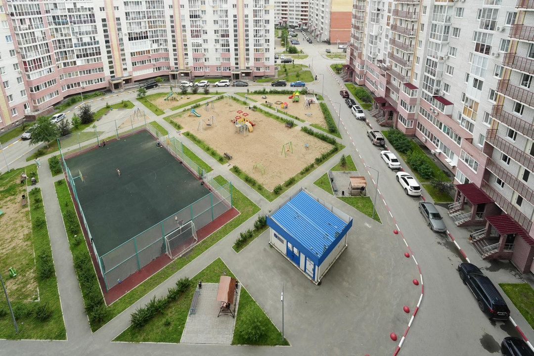 Во дворе дома размещена детская и спортивная площадка.