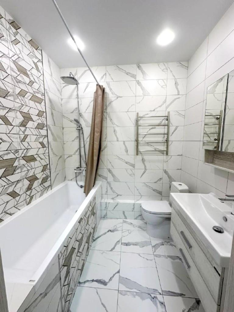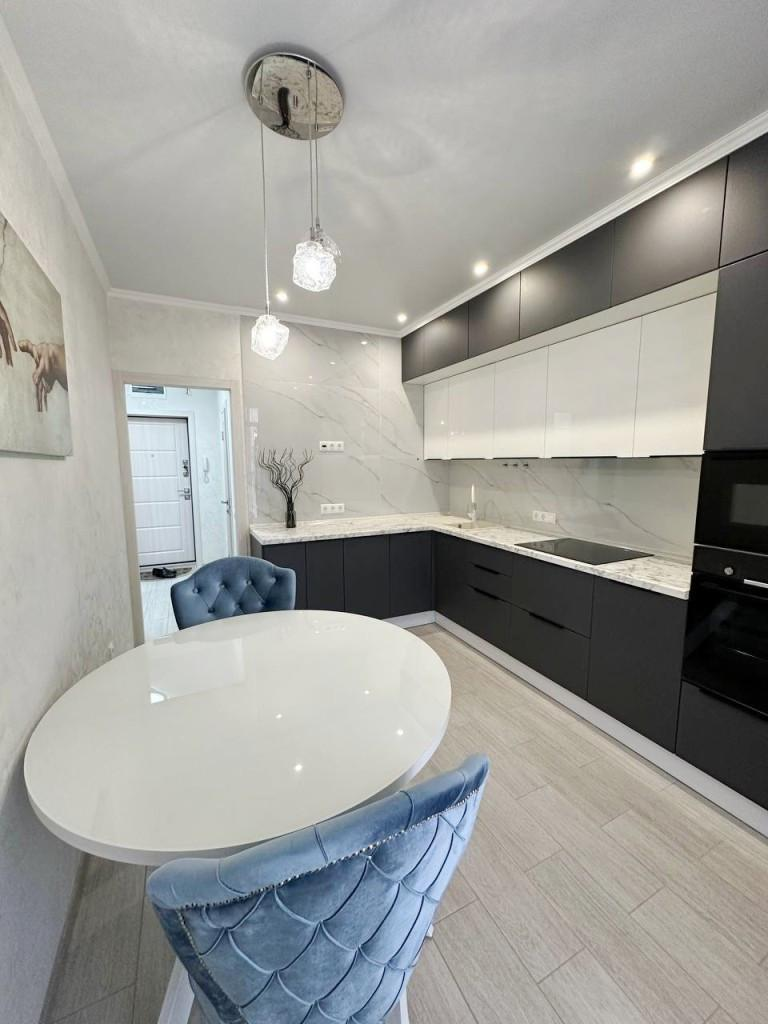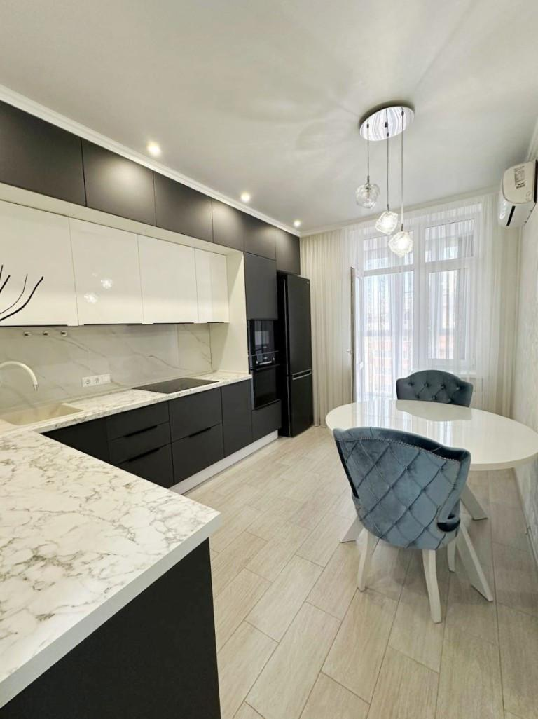 Квартира отличается качественным дизайнерским ремонтом с использованием дорогих материалов. В её интерьере гармонично сочетаются стильные решения: на полу — ламинат, санузел облицован кафелем, а витражное остекление и теплые полы создают атмосферу уюта и комфорта. Для вашего удобства установлена сплит-система, а при желании встроенная кухня и другая мебель могут остаться по договоренности.
