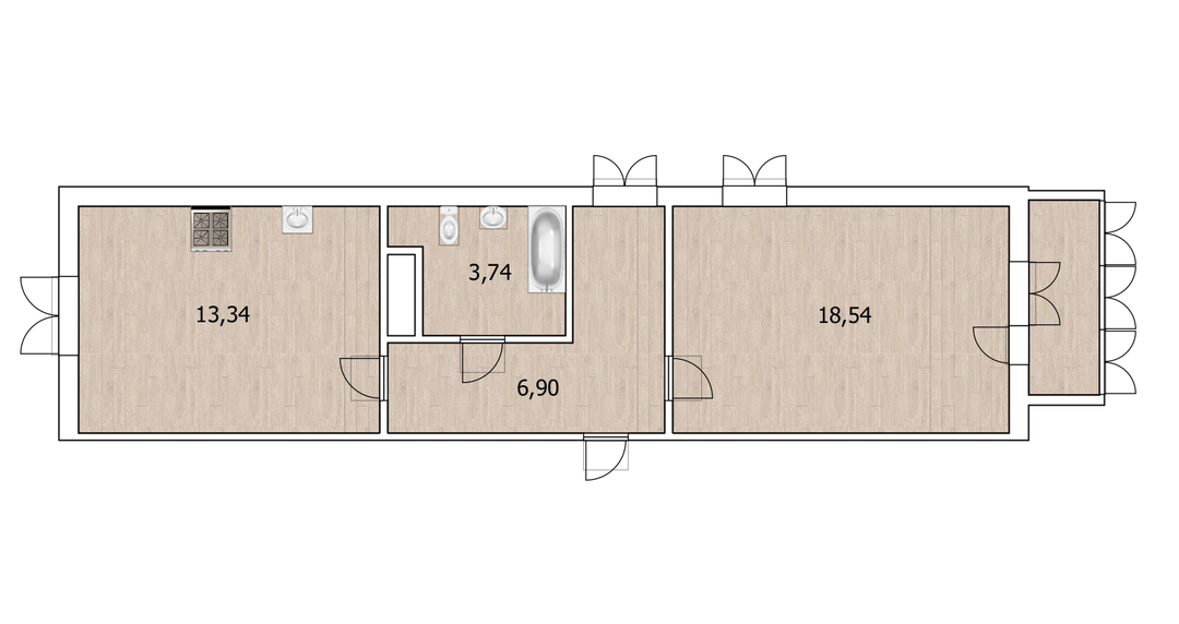 Одна изолированная комната плюс кухня-гостиная 13,5 кв.м.Совмещенный санузелГардеробная Квартира в черновом варианте, как раз для тех кто хочет воплотить свой дизайн-проект в жизнь.