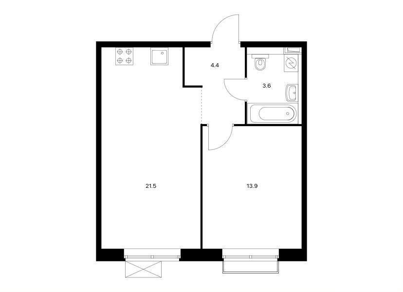 - Площадь: 43,4 м²