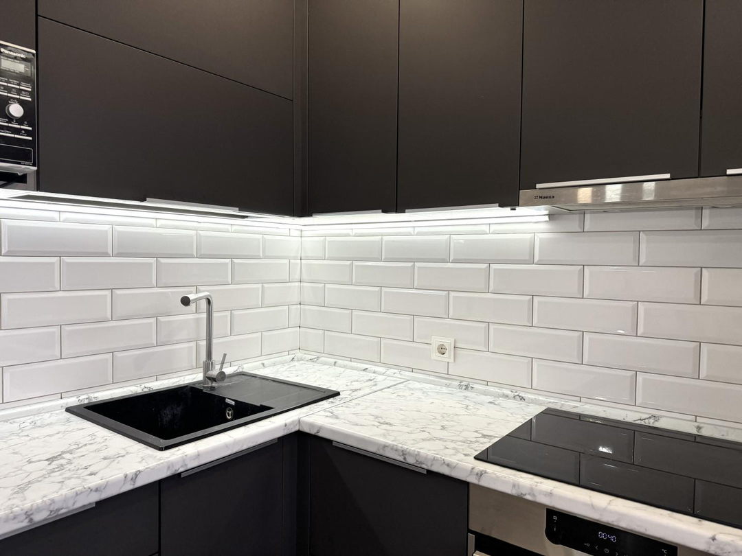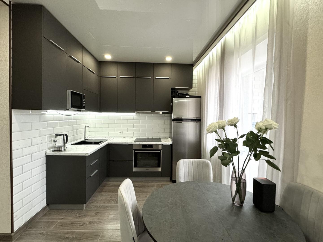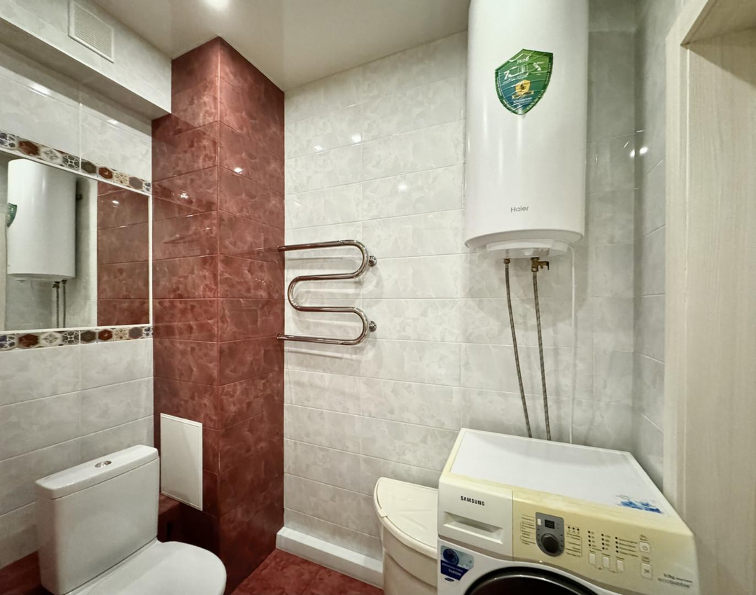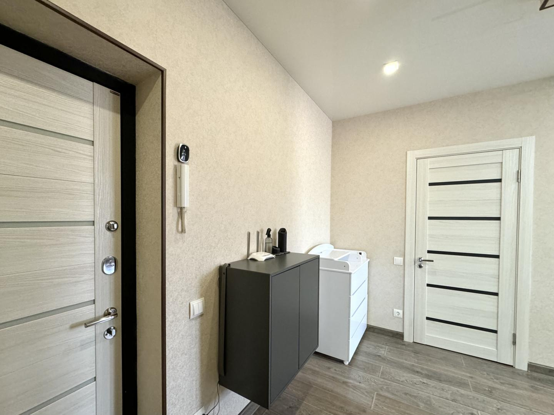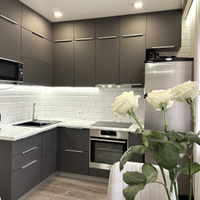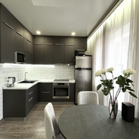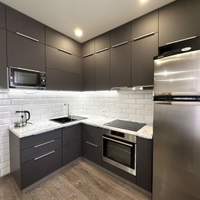 Остаётся встроенный кухонный гарнитур, варочная поверхность, духовой шкаф, вытяжка, микроволновая печь, холодильник. кондиционер и водонагреватель. Приборы учёта энергоресурсов (вода) установлены в квартире. В доме имеется общедомовой счетчик на теплоэнергию, что обеспечивает низкие коммунальные платежи на тепло!