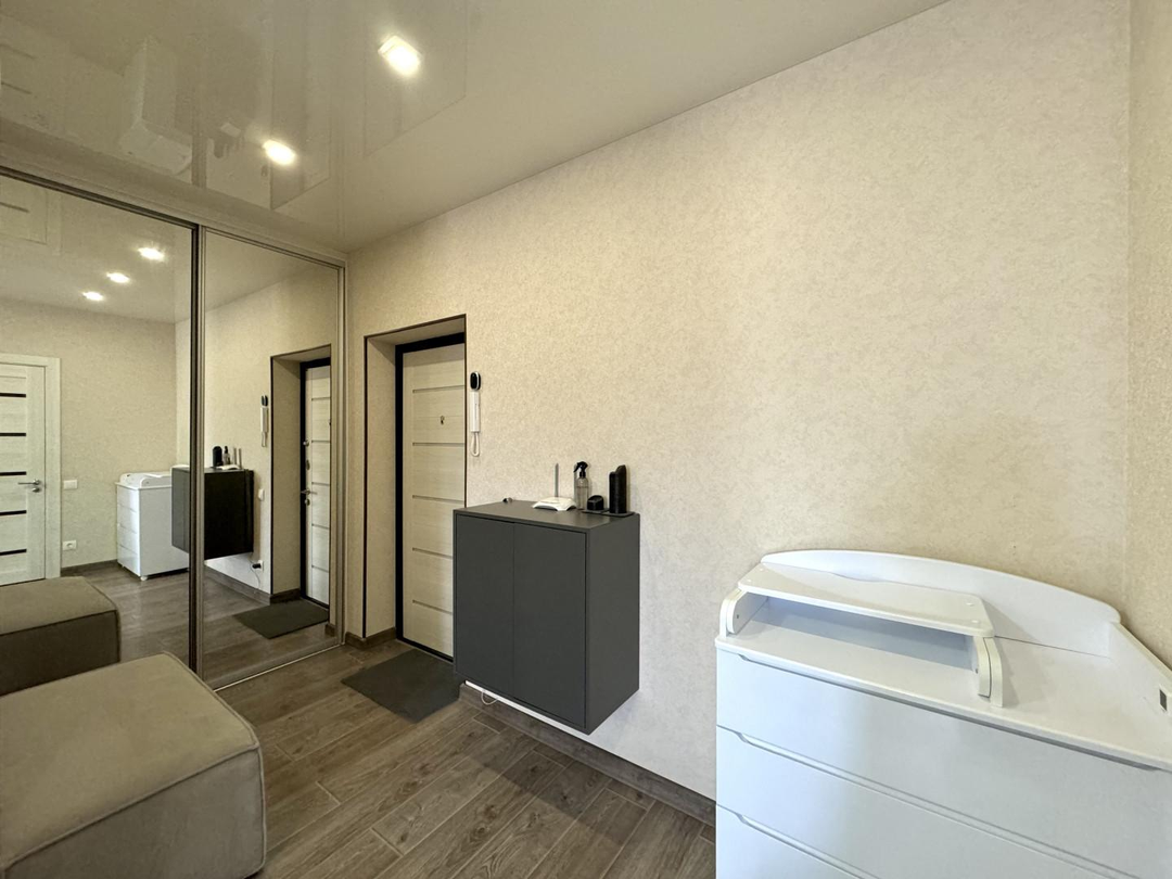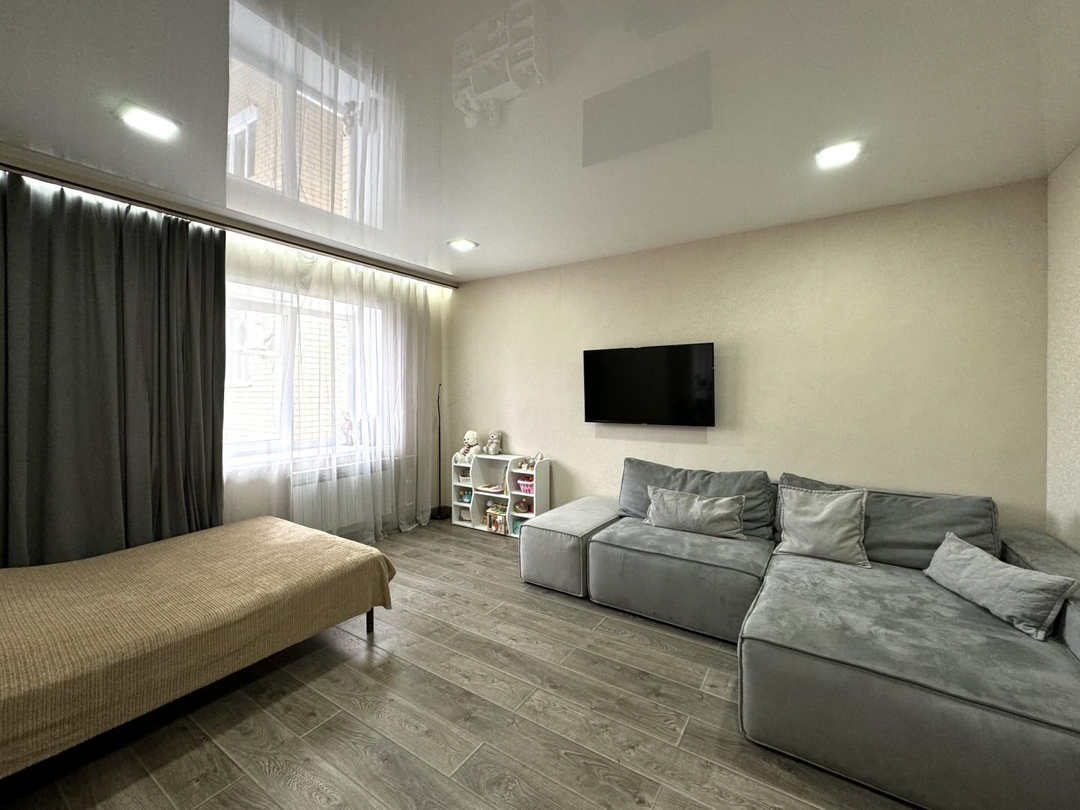 В квартире выполнен косметический ремонт в комнате и на кухне: постелен ламинат и поклеены обои. Смонтирован натяжной потолок. Установлены окна из ПВХ и современная входная дверь.
