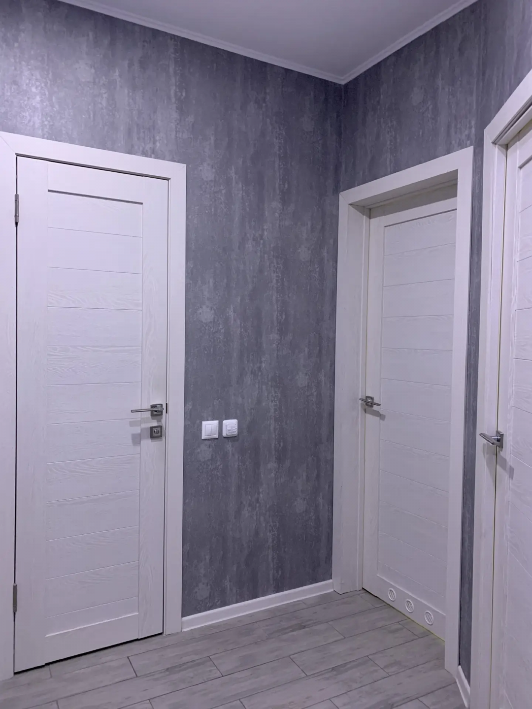 - Комбинированными полами: керамогранит в прихожей и кухне, ламинат в жилой зоне.