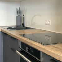 - Встроенным кухонным гарнитуром премиум-класса.